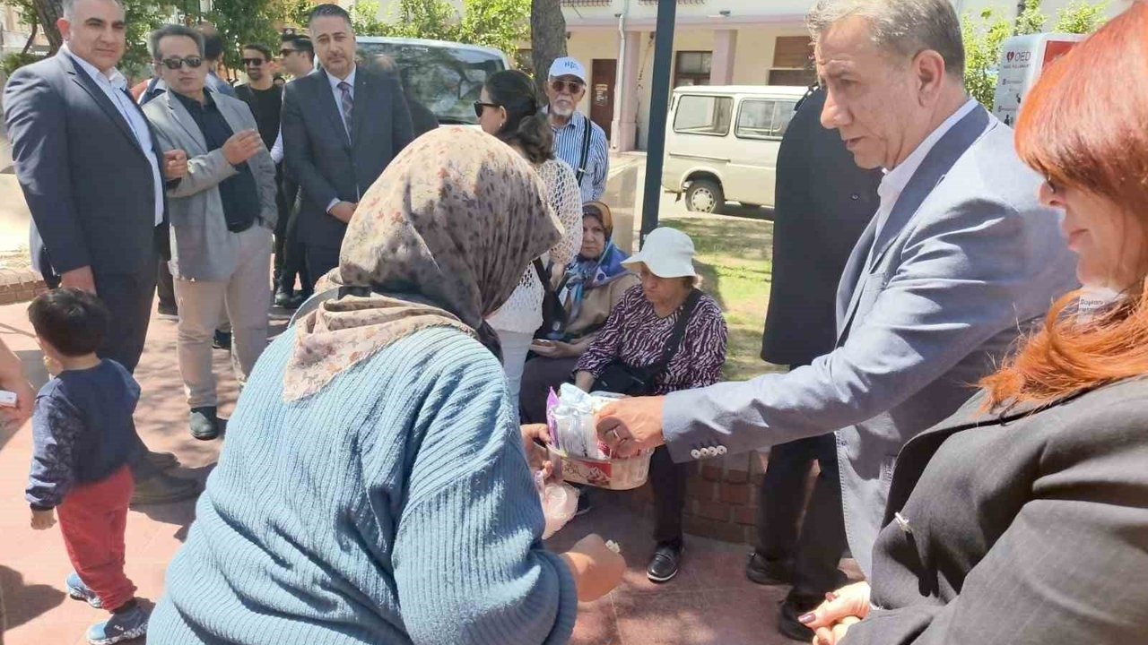 Bir tören dolayısıyla Abide Kavşağı’ndaki parka gelen Efeler Belediye Başkanı Anıl Yetişkin’i müşteri olarak bakan işportacı Selma Teyze, tören ortasında Belediye Başkanı’na satış yaptı.