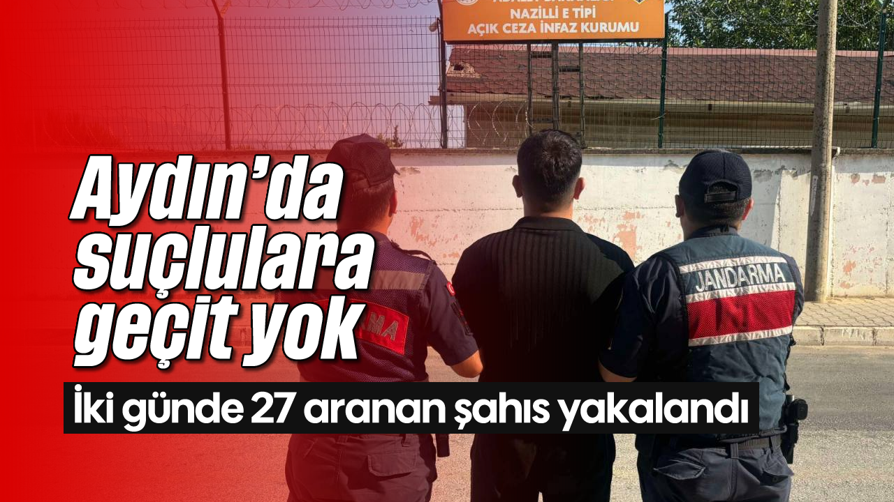 Aydın İl Jandarma Komutanlığı'na bağlı Jandarma Suç Araştırma Timi (JASAT) ve ilçe jandarma komutanlıkları tarafından iki gün boyunca gerçekleştirilen eş zamanlı operasyonlarda hakkında çeşitli suçlardan yakalama kararı bulunan 27 şahıs gözaltına alındı.