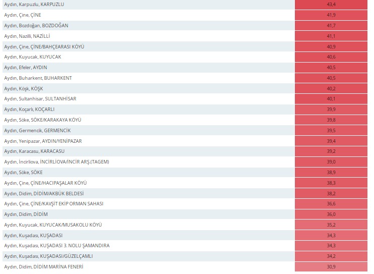 Meteoroloji Genel Müdürlüğü’nün son 24 saatteki ölçümlerine göre Aydın’da sıcak hava etkisini yoğun şekilde hissettirdi. Kent genelinde en yüksek sıcaklık