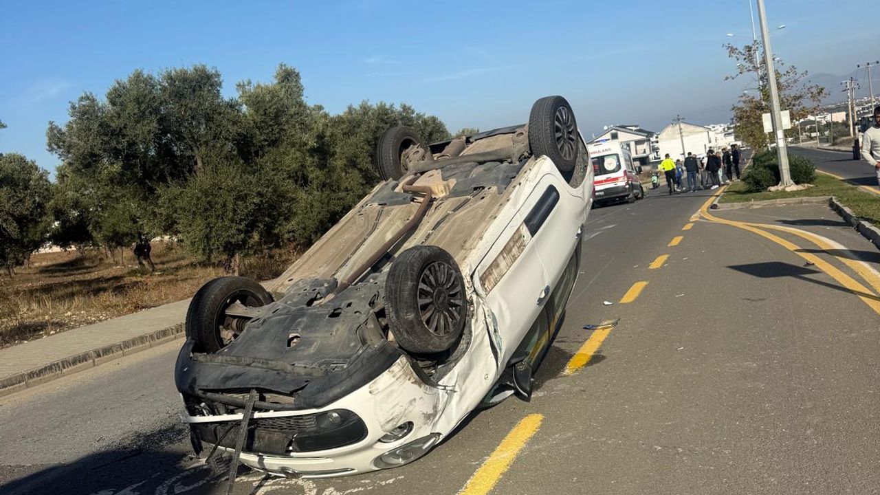 Çarpmanın etkisiyle 09 YL 464 plakalı otomobil, takla attı.