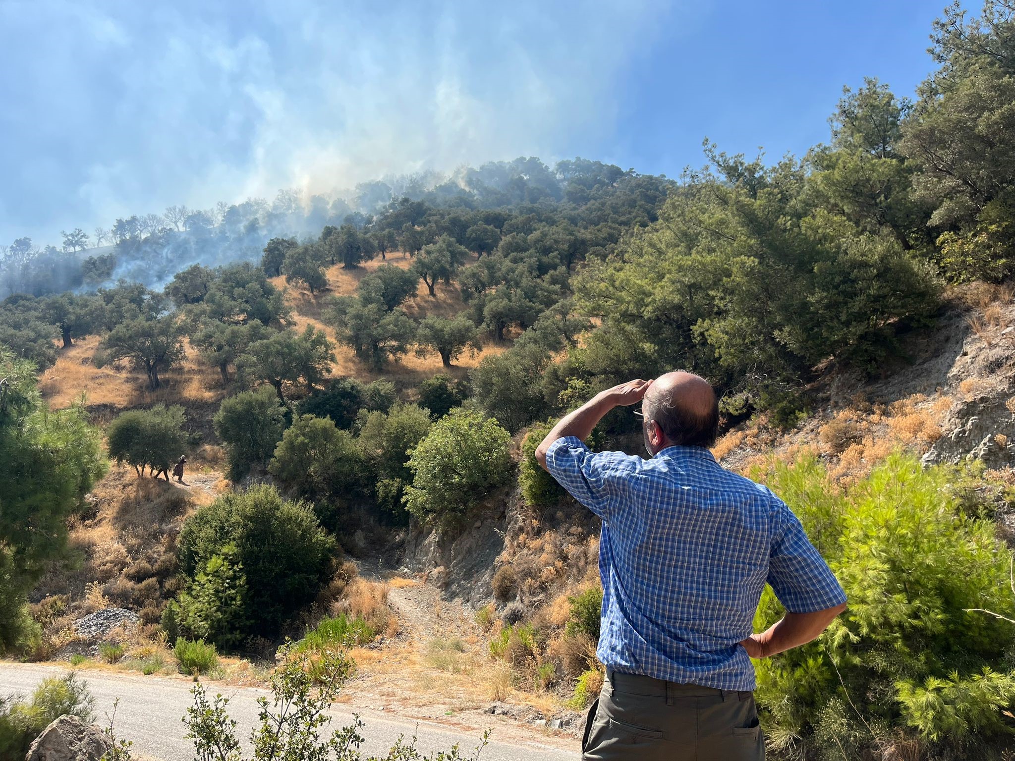 Yangın, Efeler ilçesi Dağeymiri Mahallesi’ndeki zeytinlik alanda meydana geldi. İddiaya göre, araziden dumanlar yükseldiğini gören vatandaşlar, durumu Aydın Büyükşehir Belediyesi İtfaiye Dairesi Başkanlığı ve Muğla Orman Bölge Müdürlüğü’ne bildirdi. İhbar üzerine harekete geçen ekipler, kısa sürede bölgeye ulaştı.