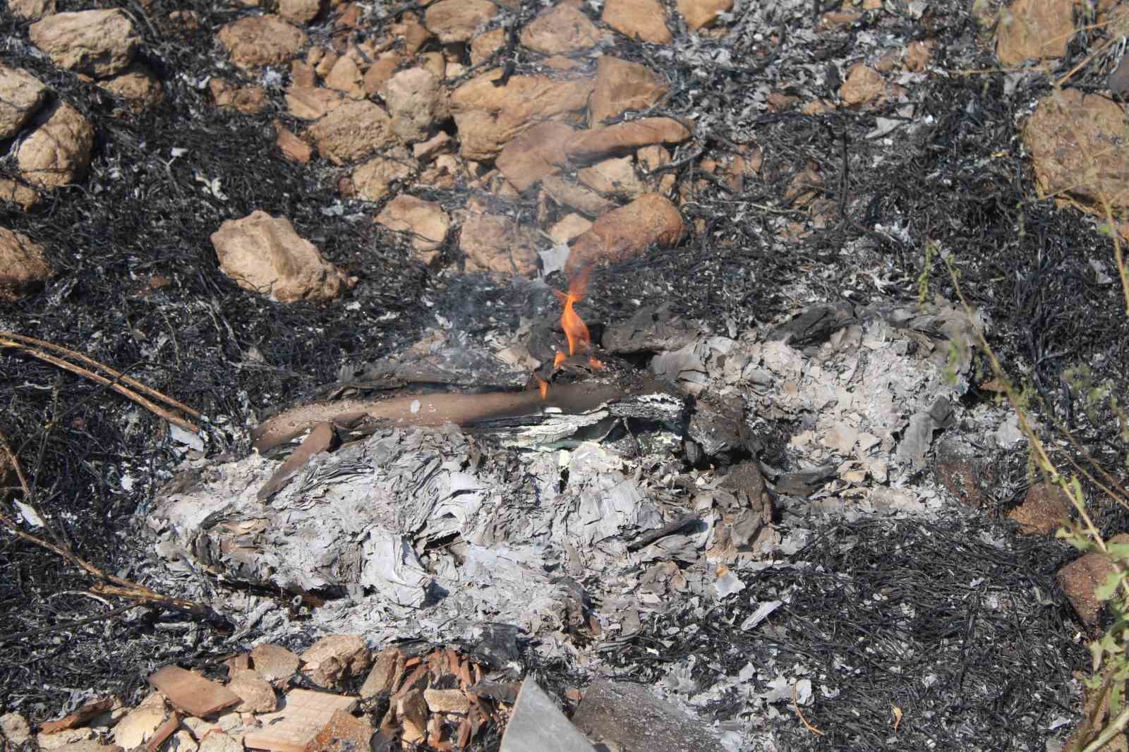 Rüzgarın etkisiyle birlikte kuru otlar hızlıca tutuşarak alevler geniş alana yayıldı.