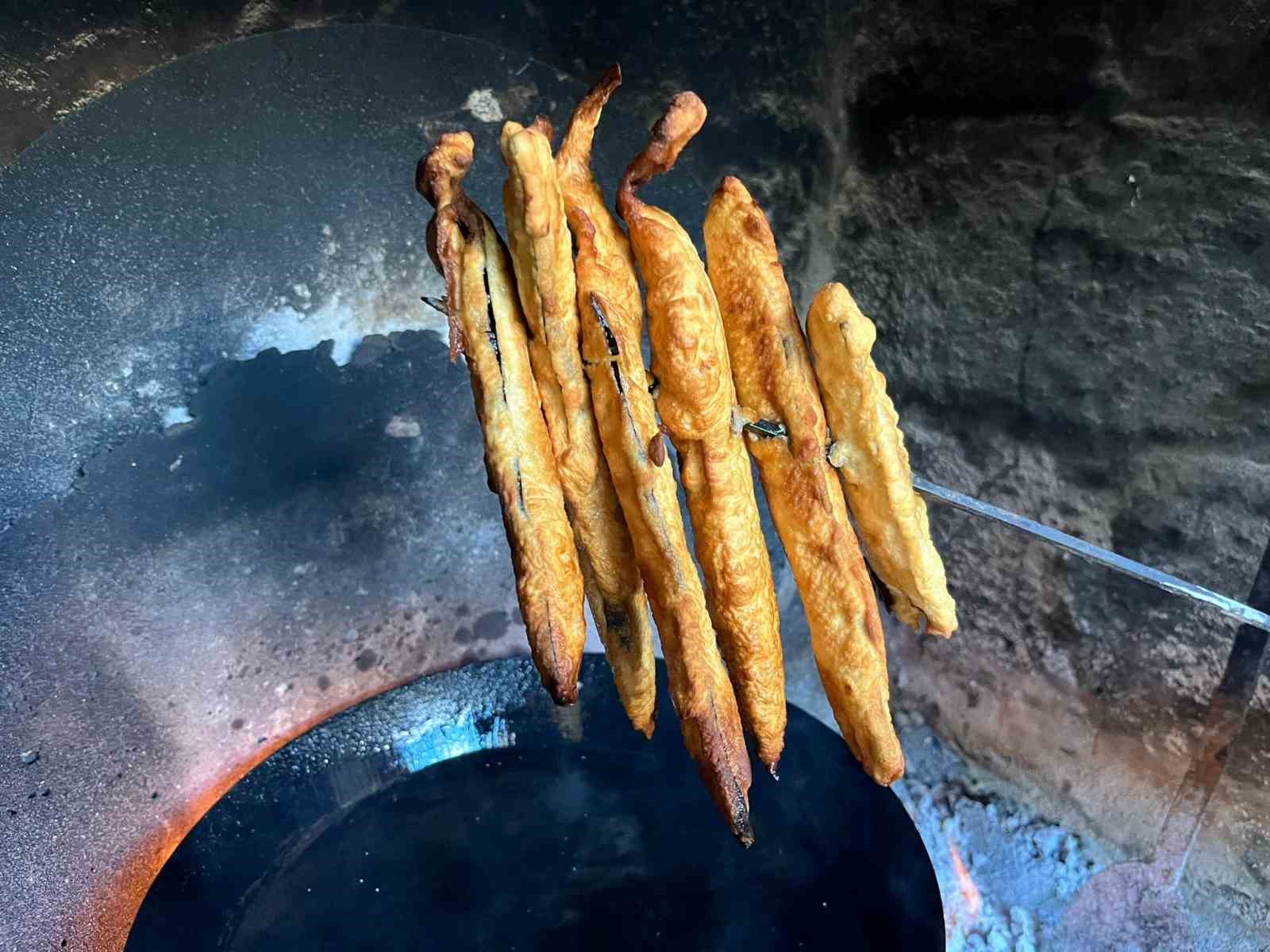Özel hazırlanmış patlıcanların hamurlanarak yapılan ve adına patlıcan balığı verilen yemeğin asırlardır yöreye özgü bir yemek olduğunu belirten Esma Kaygısız, "Patlıcanları uzun ince doğruyoruz. Daha sonra üzerine tuz atıyoruz. Sonra duru bir hamur hazırlıyoruz. Patlıcanı hamurun içine batırıp daha sonra zeytinyağında kızartıyoruz. Kızardıktan sonra patlıcan balığını çıkarıyoruz. Genelde sabah kahvaltıda veya gün içinde çayın yanında yiyoruz. Yemesi çok güzel oluyor. Bizim bu yörede kızartmadan sonra en çok tercih edilen ikinci yiyecek patlıcan balığı. Misafirimiz geldi mi hemen hazırlayıp ikram ediyoruz. Bizim için kıymetli bir yemek" diye konuştu.
