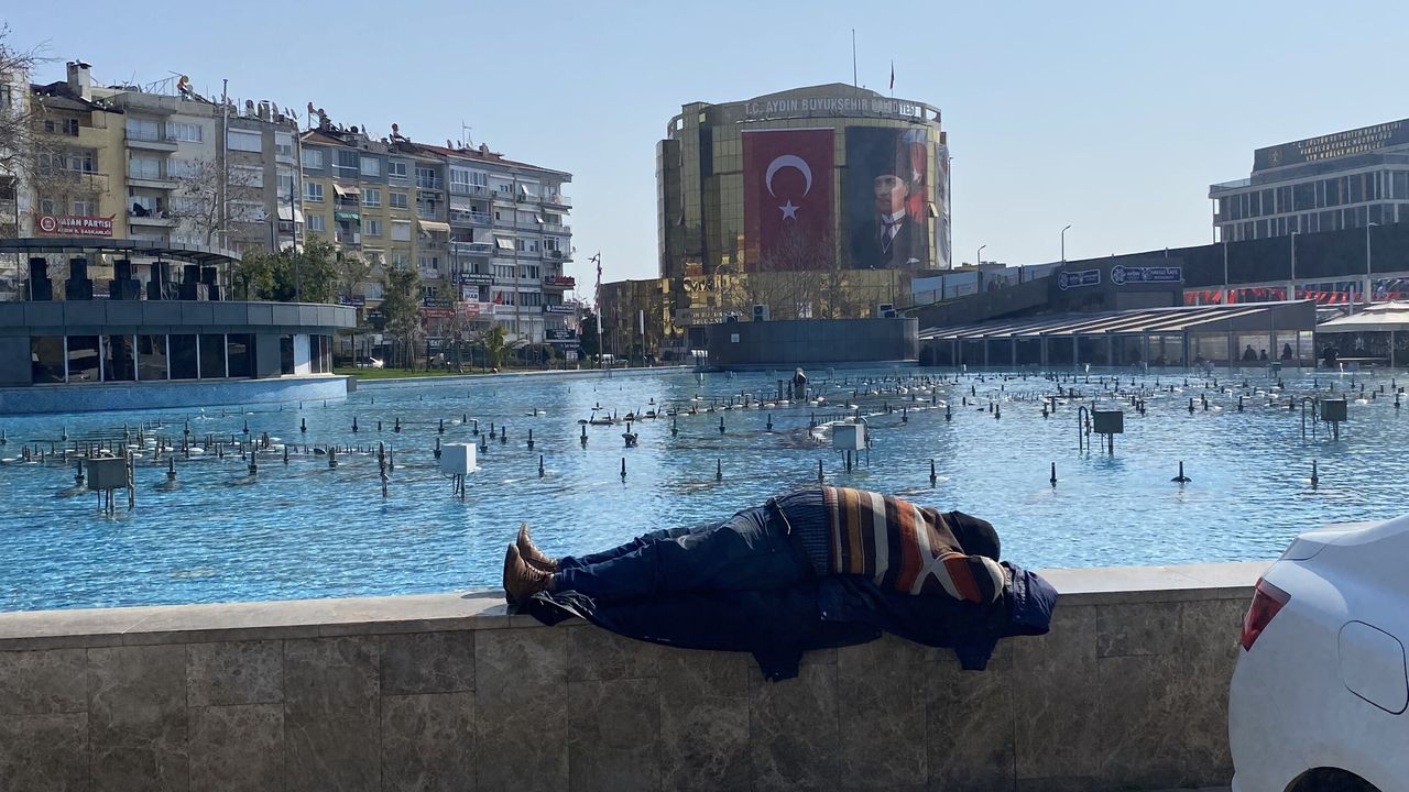 Son günlerde etkisini artıran güneşli havayı fırsat bilen vatandaşlardan biri de güneşlenmek için Aydın’ın en kalabalık noktalarından biri olan Atatürk Kent Meydanı’nı tercih etti. Havuz duvarının üzerine çıkan ve ceketini altına sererek uzanan vatandaş, uzun süre güneşin keyfini çıkardı.