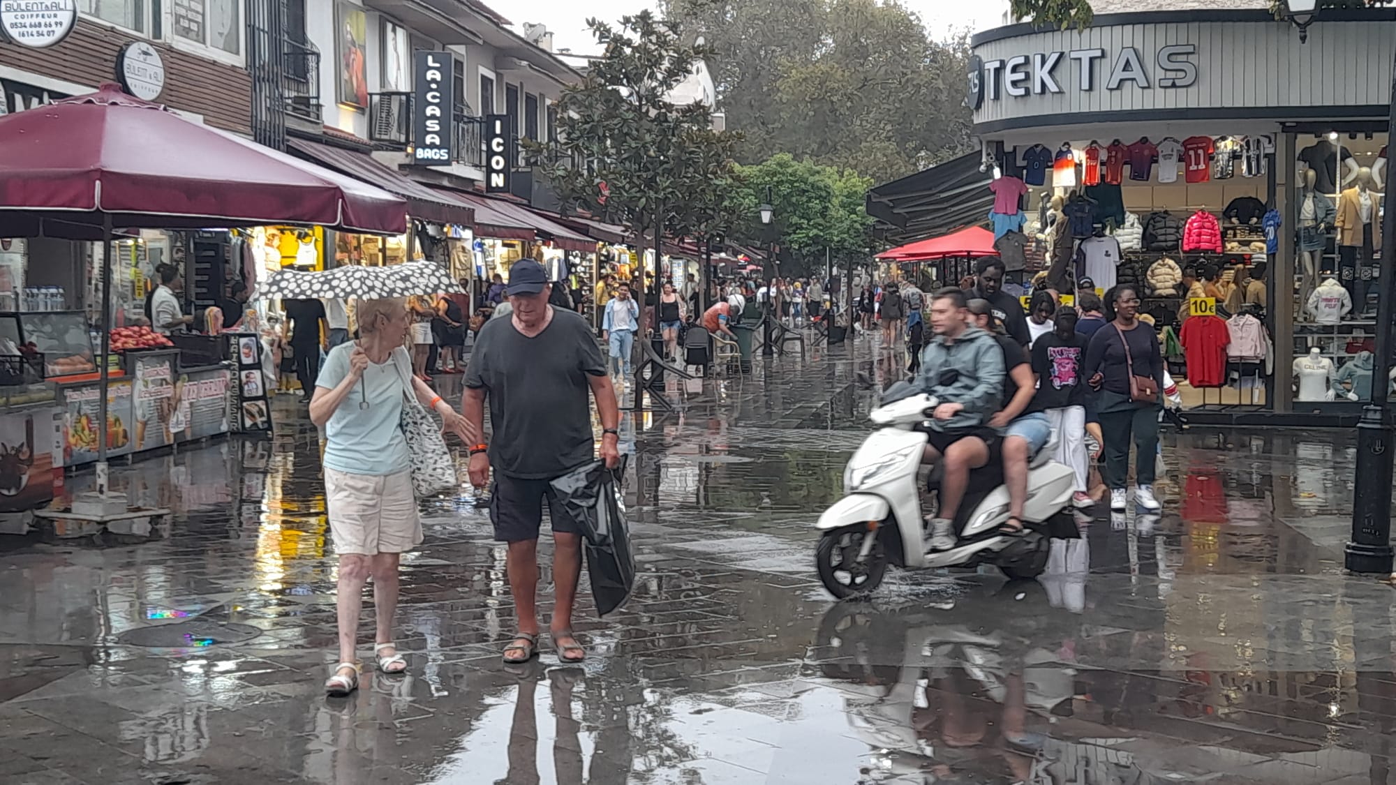 Uzun ve sıcak geçen yazın ardından öğle saatlerinde başlayan yağış, bölge sakinleri ve tatilciler için hoş bir sürpriz oldu. Bulutlu bir gökyüzü ile güne başlayan Kuşadası’nda kısa süreli ancak etkili olan sağanak, mevsim geçişinin de habercisi niteliğindeydi.