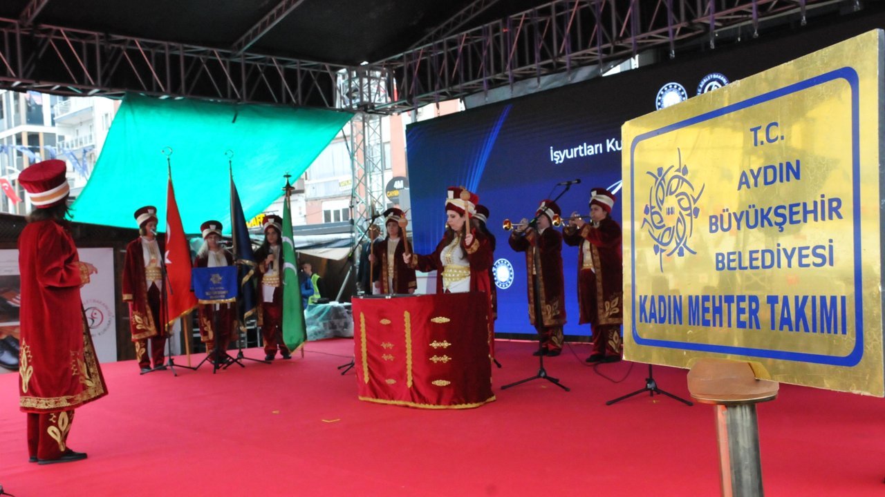 Aydın’ın kültür elçileri olarak anılan Aydın Büyükşehir Belediyesi Kadın Mehteran Takımı, Aydın’da açılışı yapılan “İşyurtları Kurumu Ürün ve El Sanatları Fuarı”nda sahne alarak büyük ilgi gördü.