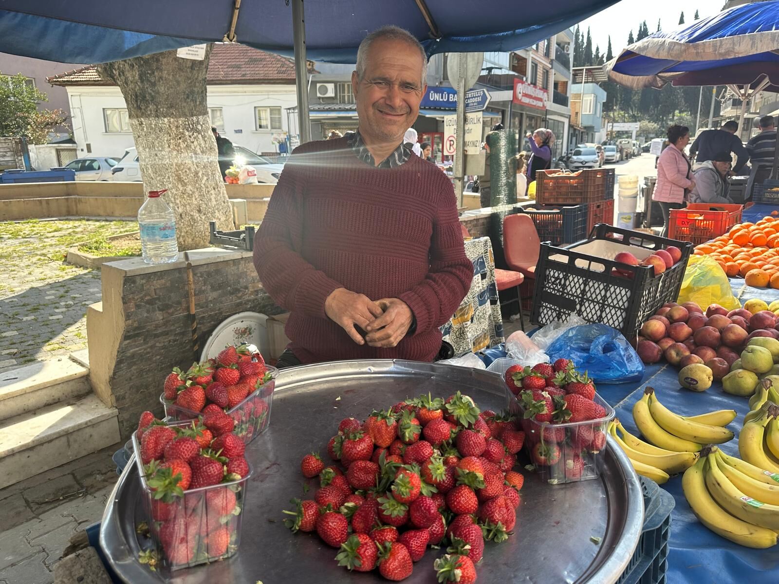 Çilek sezonunun başlamasıyla birlikte ilk hasat ürünleri de pazar tezgâhlarında yerini aldı. Germencik, Ortaklar ve İncirliova ilçelerinde 13 yıldır pazarcılık yapan Recep Eryiğit de, tezgâhında yeni sezon çileklerini satışa sundu. Çileğin kilosunu şu anda 150 liradan sattıklarını ifade eden Eryiğit, fiyatın yüksek olması nedeniyle satışların biraz yavaş ilerlediğini belirterek, “Fiyattan dolayı çilek biraz ağır gidiyor ama yine de tek tük satış oluyor. Şu anda çileğin kilosu 150 lira” dedi.