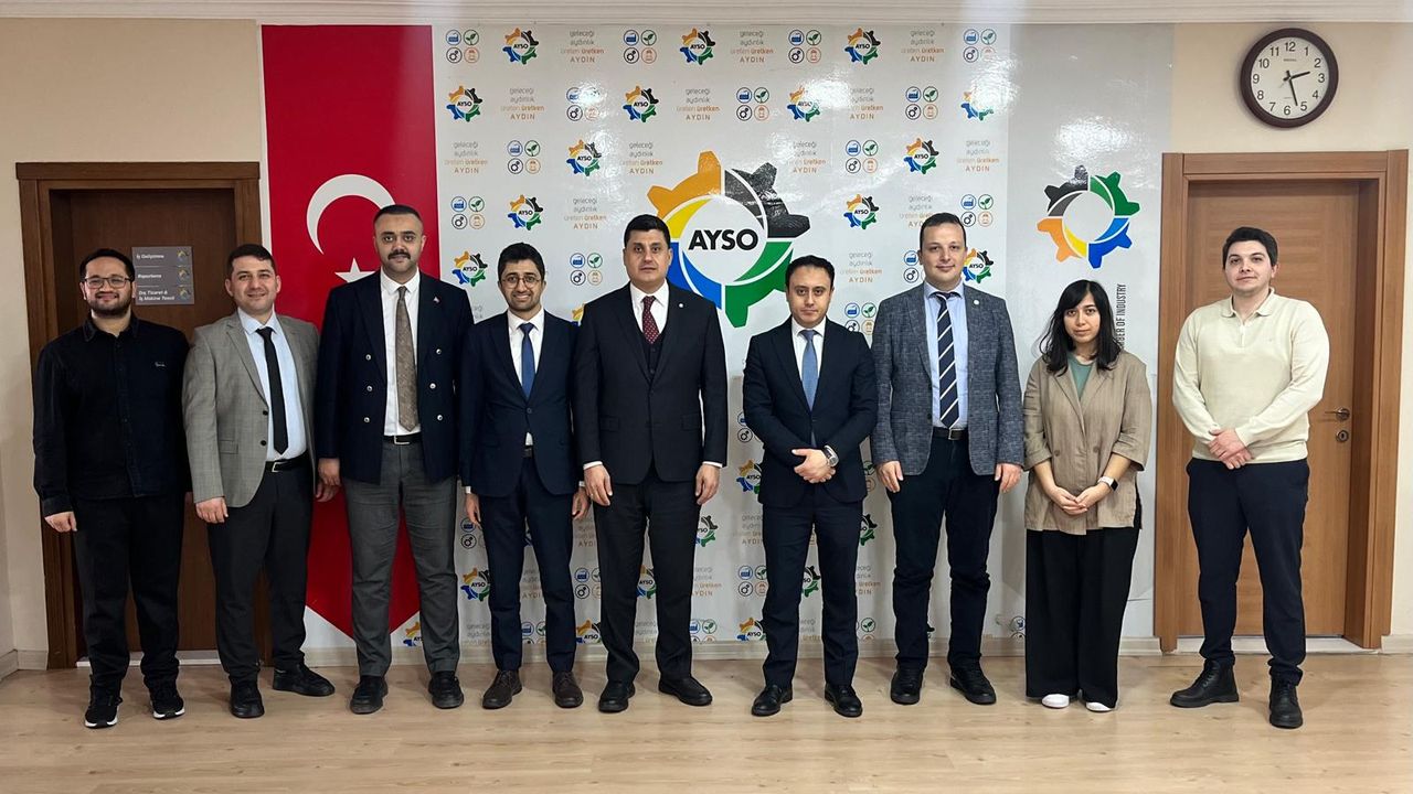 Sanayi ve Teknoloji Bakanlığı yetkilileri, Aydın Sanayi Odası (AYSO)’nı ziyaret etti. Ziyaret sonrası gerçekleştirilen toplantıya Bakanlık adına Analiz ve Değerlendirme Daire Başkanı Abdullah Yiğit, Sanayi İş Birlikleri Daire Başkanı Mehmet Çağatay Taşkın ile uzmanlar Derya Mızrak Esen ve Volkan Şimşek katıldı. Toplantıda ayrıca Aydın Sanayi ve Teknoloji İl Müdürü Fatih Ulutaş da yer aldı. AYSO’yu temsilen Yönetim Kurulu Başkanı Gökhan Maraş, Genel Sekreter Vekili Celil Oruç ile Sanayi Hizmetleri Uzman Yardımcıları Mert Metin Taş ve Meriç Maraş toplantıya katılım sağladı.