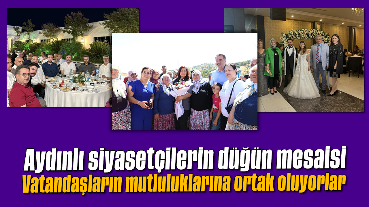 AK Parti Aydın Milletvekili Ömer Özmen, CHP Aydın Milletvekili Evrim Karakoz, Aydın Büyükşehir Belediye Başkanı Özlem Çerçioğlu, Efeler Belediye Başkanı CHP’li Anıl Yetişkin, Nazilli Belediye Başkanı CHP’li Ertuğrul Tetik, İncirliova Belediye Başkanı AK Partili Aytekin Kaya, Bozdoğan Belediye Başkanı CHP’li Mustafa Galip Özel, Çine Belediye Başkanı CHP’li Mehmet Kıvrak, Koçarlı Belediye Başkanı CHP’li Özgür Arıcı, Buharkent Belediye Başkanı AK Partili Mehmet Erol, AK Parti Aydın İl Başkanı Mehmet Erdem, CHP Aydın İl Başkanı Hikmet Saatçı, MHP İl Başkanı Haluk Alıcık, İYİ Parti Aydın İl Başkanı Ahmet Ertürk, MHP Aydın eski İl Başkanı Burak Pehlivan, düğün, sünnet, nişan merasimlerine katılarak vatandaşları yalnız bırakmıyor. Vatandaşları üzüntülü günlerde olduğu gibi mutlu günlerinde de yalnız bırakmayan Aydınlı bu siyasetçiler, takdir topluyor. Bu merasimlerde belediye başkanları çiftlerin nikahını kıyarken bazı siyasetçiler de nikah şahidi oluyor. Aydınlı bu siyasetçiler, bu merasimdeki davetlilerle de sohbet ederek sorun ve taleplerini dinleyerek gönülleri fethediyor.