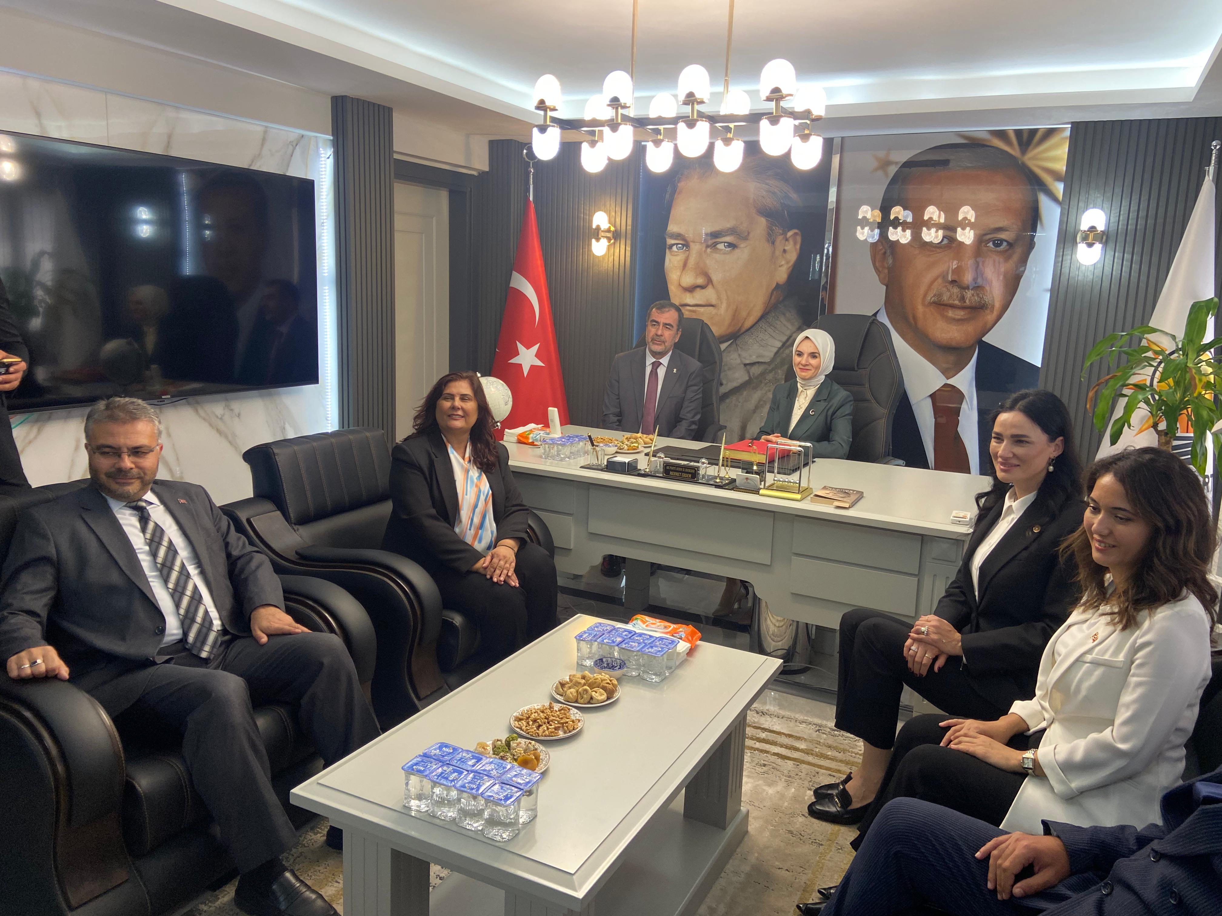 Aile ve Sosyal Hizmetler Bakanı Mahinur Özdemir Göktaş'ın Aydın’daki son durağı AK Parti İl Başkanlığı oldu. Bakan Göktaş'ı, İl Başkanı Mehmet Erdem, Kadın Kolları İl Başkanı Şahika Edremit ve çok sayıda partili çiçeklerle karşıladı.