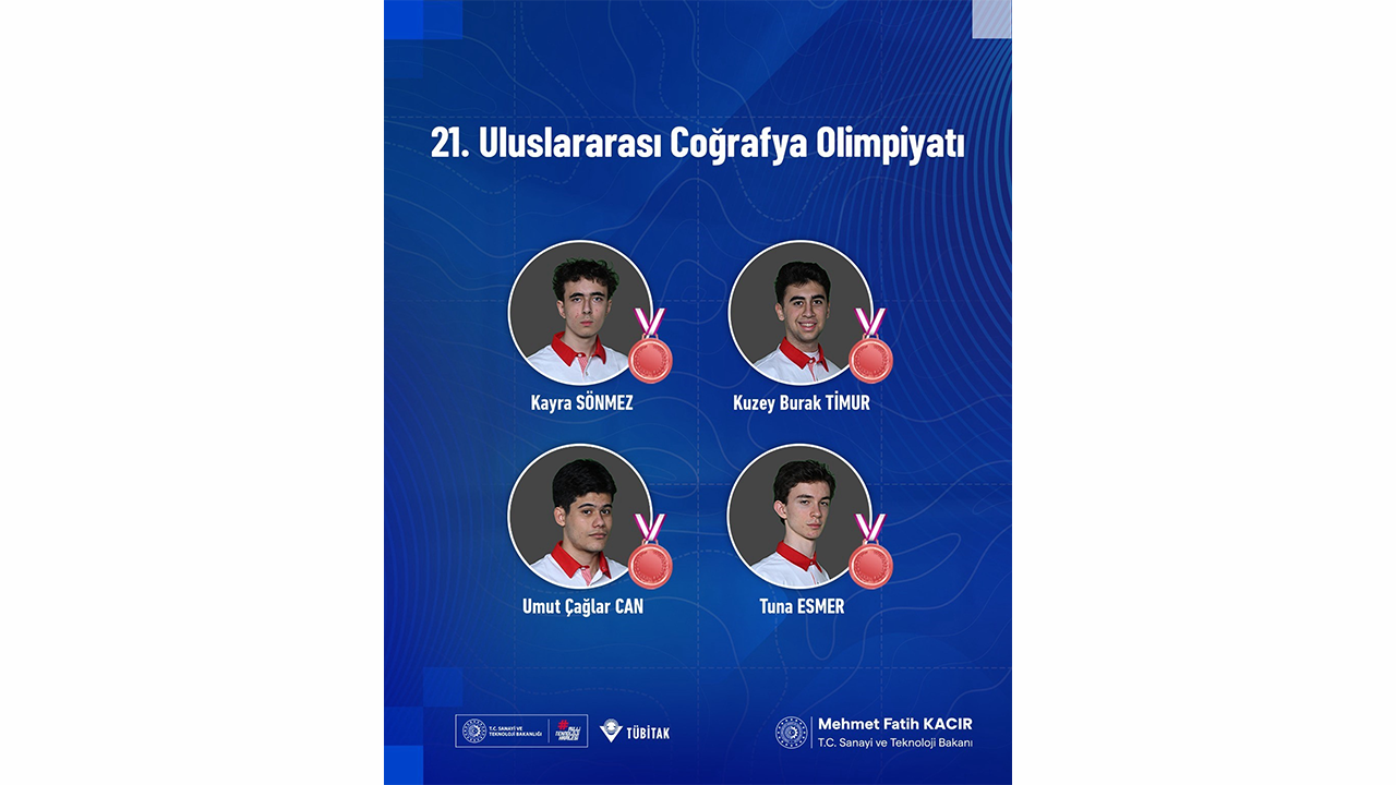 Sanayi ve Teknoloji Bakanı Mehmet Fatih Kacır, sosyal medya hesabından yaptığı paylaşımda Tayland’da düzenlenen 21. Uluslararası Coğrafya Olimpiyatı’nda Türkiye’yi temsil eden gençlerin 4 bronz madalya kazandığını belirterek, "47 ülkeden 179 öğrencinin yarıştığı 21. Uluslararası Coğrafya Olimpiyatı’nda ülkemizi temsil eden gençlerimiz 4 bronz madalya kazanarak bize gurur yaşattılar. TÜBİTAK bünyesinde yürütülen Bilim Olimpiyatları Programı kapsamında yetiştirilen öğrencilerimizi tebrik ediyor, ülkemizin yarınları için fedakarca emek veren değerli ailelerine, öğretmenlerimize, süreçte görev alan tüm akademisyenlerimize teşekkür ediyorum" ifadelerini kullandı.