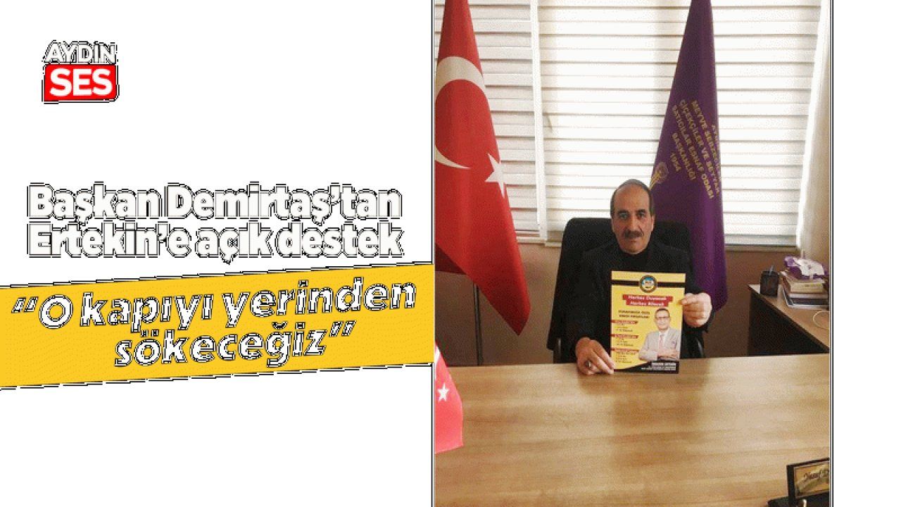 Aydın Bakkallar Odası Başkan Vekili İbrahim Ertekin, şubat ayında genel kurula gitmeye hazırlanan Aydın Esnaf ve Sanatkarlar Kredi ve Kefalet Kooperatifi’nde başkanlığa talip oldu. Esnaf ve sanatkarları ziyaret etmeye devam eden Ertekin’e Aydın Pazarcılar Odası Başkanı Yusuf Demirtaş’tan açık destek geldi. Sosyal medya hesabından açıklama yapan Demirtaş, Ertekin’in yanında olduğunu açıkladı. Aynı zamanda kooperatif ortağı olan oda üyelerinden Ertekin’e oy vermelerini isteyen Demirtaş, Ahmet Karabenli başkanlığındaki mevcut kooperatif yönetimine de tepki gösterdi. Paylaşımında Başkan Demirtaş, "Saygıdeğer esnaf kredi kefalet üyesi olan esnaflarımızdan, şubat ayında yapılacak olan esnaf kefalet kooperatifi olağan genel kurulunda, adayımız İbrahim Ertekin’e destek vermelerini rica ediyorum. Esnaf kefalet kooperatifi hepimizin evi, hep birlikte yönetmeye var mısınız?" ifadelerini kullandı. Aydın kooperatifinin esnafa hiçbir faydasının olmadığını iddia eden Başkan Demirtaş, “Esnafımız, kooperatife korkarak gidiyordu, her kooperatife gittiğinde de kapı yüzüne kapandı, seçimden sonra o kapıyı yerinden sökeceğiz” dedi.