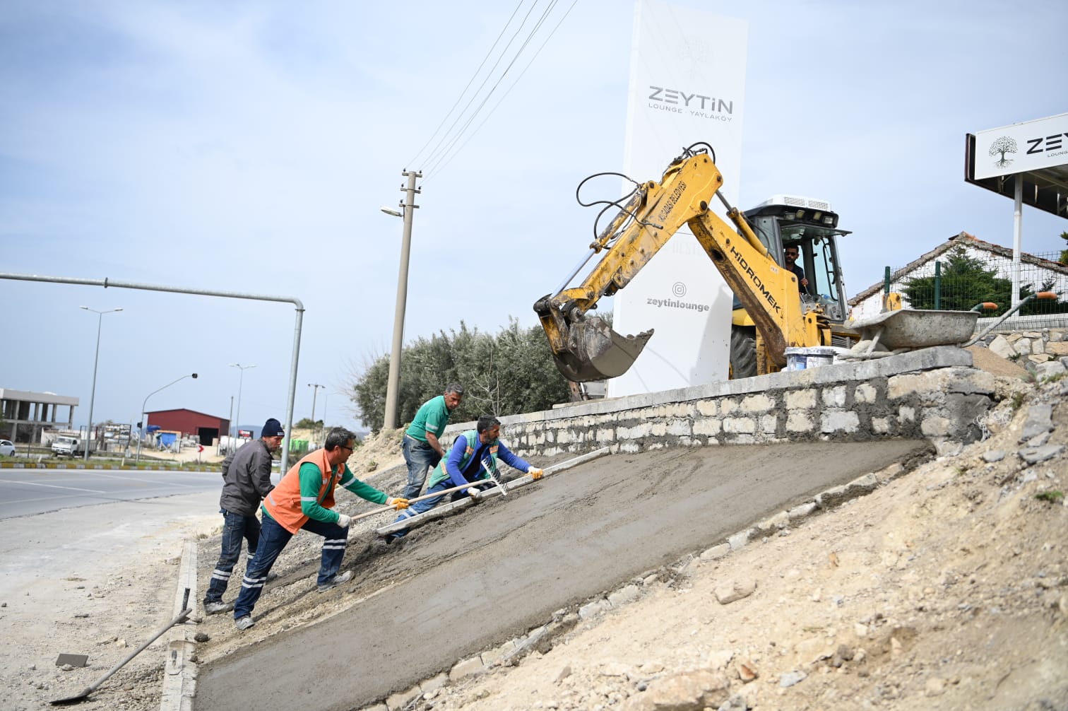 Kuşadası Belediyesi, ev sahipliği yaptığı kahvaltı salonları, et lokantaları ve mangal alanları ile kentin en çok ziyaretçi ağırlayan bölgelerinden olan Yaylaköy Mahallesi’nin girişini daha estetik hale getirmek için çalışma başlattı. Kuşadası Belediyesi ekiplerinin zemin düzenlemesi yürüttüğü 200 metrekarelik alanı kapsayan mahalle girişi, dolomit taşlarla yazılacak ‘Yaylaköy’ yazısının etrafına uygulanacak peyzaj tasarımı ile estetik ve dikkat çekici bir hale getirilecek. Zeytin ağaçları ve iklime uygun çeşitli süs bitkileri ile çok daha yeşil bir görünüme kavuşacak olan Yaylaköy Mahallesi, konuklarını çok daha güzel bir biçimde karşılayacak.