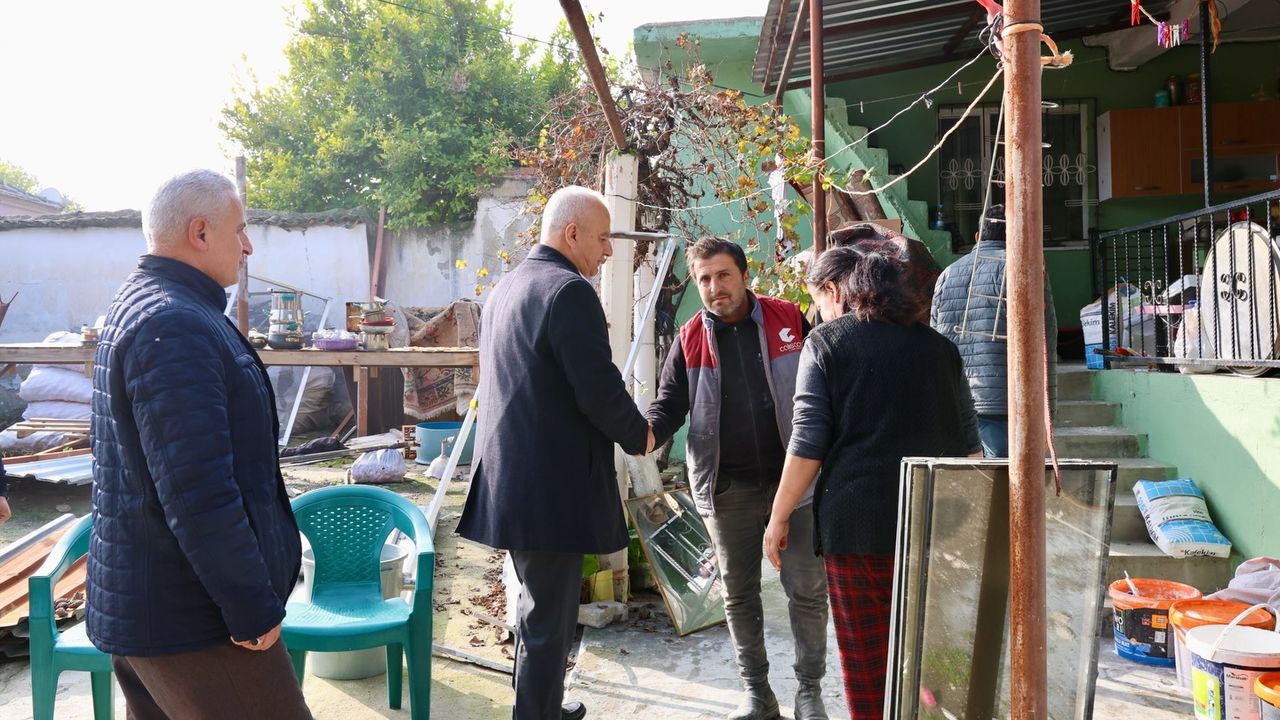 Aydın’ın Çine ilçesinin Yolboyu Mahallesi’nde yaşayan Vesile-Kadir Can çiftinin evlerinde geçtiğimiz günlerde yangın çıktı. Çıkan yangın sonucu Can ailesi evi, zarar gördü. Zor günler geçiren Can ailesine yardımına Çine Belediye Başkanı Mehmet Kıvrak koştu. Başkan Kıvrak, mahalle muhtarı Mustafa İğci ile birlikte Can ailesini ziyaret etti.
