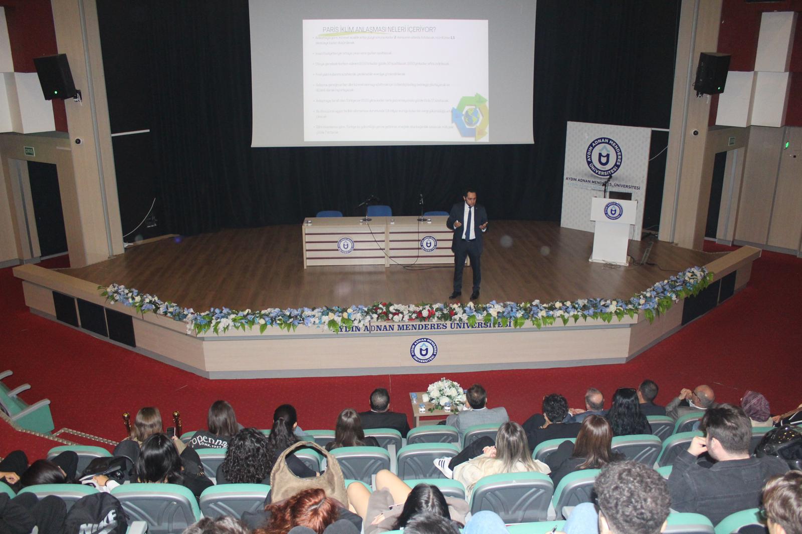 Konferansta açılış konuşmasını yapan Çevre, Şehircilik ve İklim Değişikliği İl Müdürü Ergin, Paris İklim Anlaşması’nın önemine ve dikkat çeken hususlara değindi. Konferansı gerçekleştiren Koca ise küresel ısınma, iklim değişikliği, Kyoto Protokolü ve Paris İklim Anlaşması’nı anlatarak özellikle tarımsal üretim, su kaynaklarının verimli kullanılması ve yenilenebilir enerji kaynaklarının önemi hakkında bilgilendirmede bulundu. Ayrıca konferansın sonunda Dekan Yılmaz, Koca’ya teşekkür belgesi takdim etti. Başkan Koca da Yılmaz ve ekibine bu güzel organizasyon için teşekkürlerini iletti.
