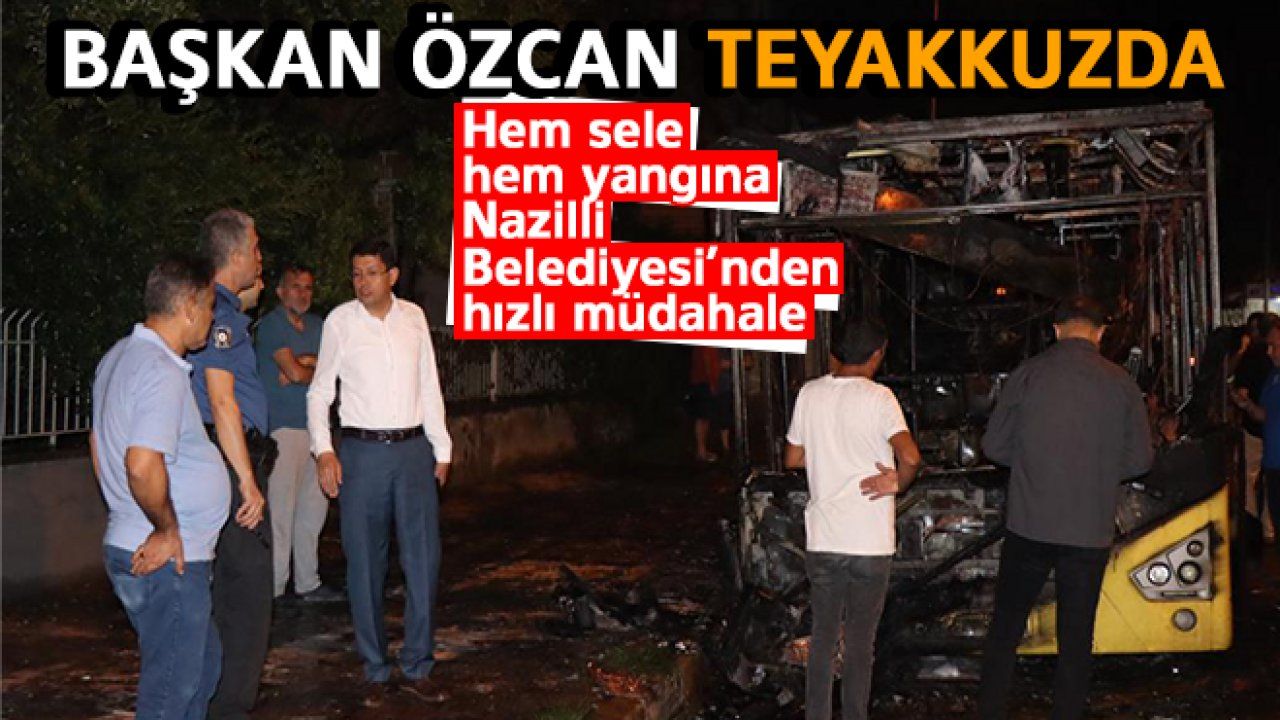 Özcan ekipleri ile şehirde incelemelerde bulunurken, Zafer Mahallesi 22 Sokak'ta halk otobüsünün yandığı haberini aldı. Başkan Özcan, ekipleri ile olay yerine giderek söndürme çalışmalarına Nazilli Belediyesi olarak destek verdi.“ART ARDA KÖTÜ HABERLER ALDIĞIMIZ BİR GÜN OLDU”