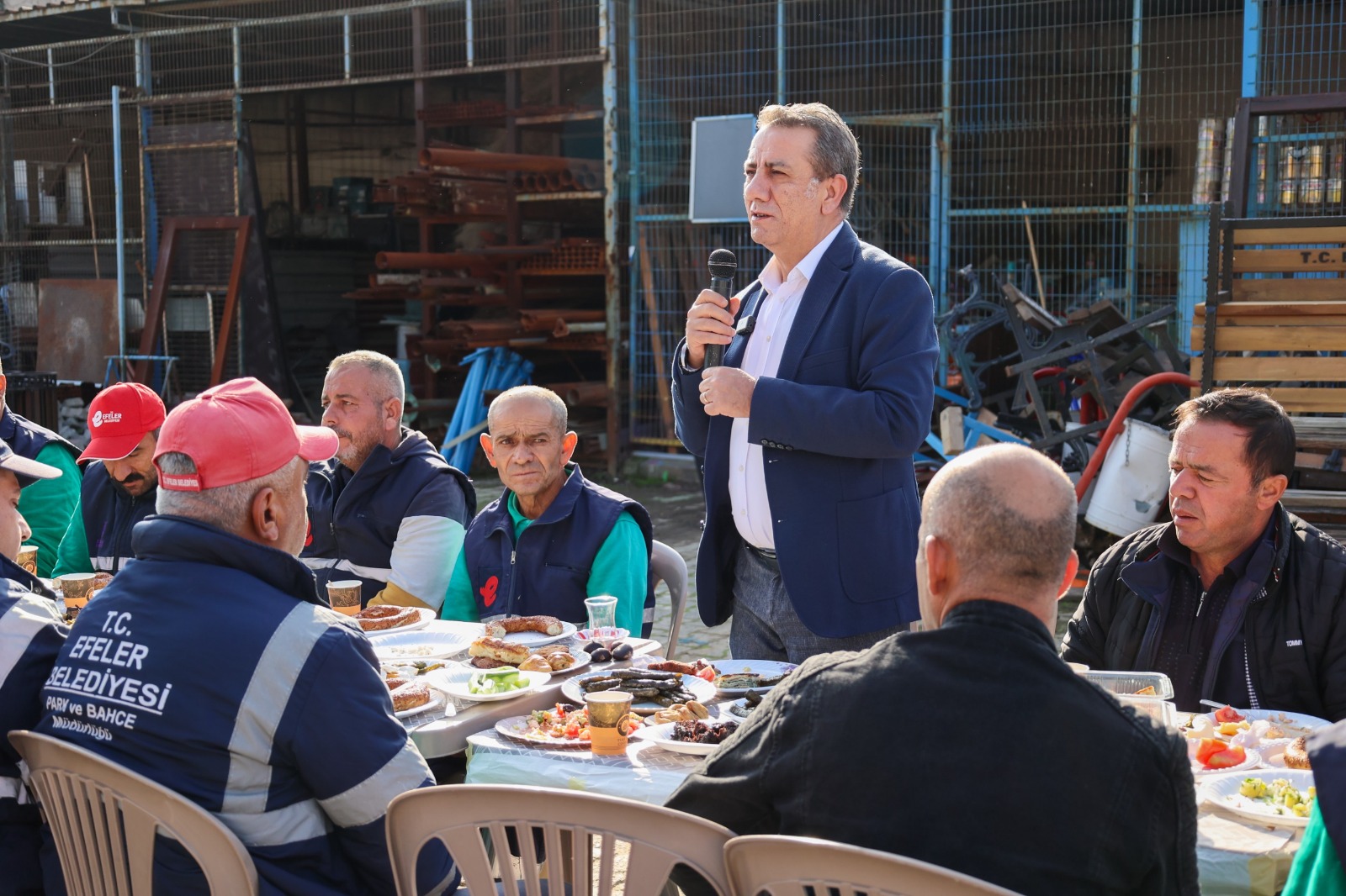 Belediye hizmetlerinin özverili personel sayesinde kent genelinde aksatılmadan sürdüğünü belirten Yetişkin, “Her birinizin emeği ve gayreti bizim için çok kıymetli. Hepimiz, Efeler’e en iyi şekilde hizmet edebilmek için varız.