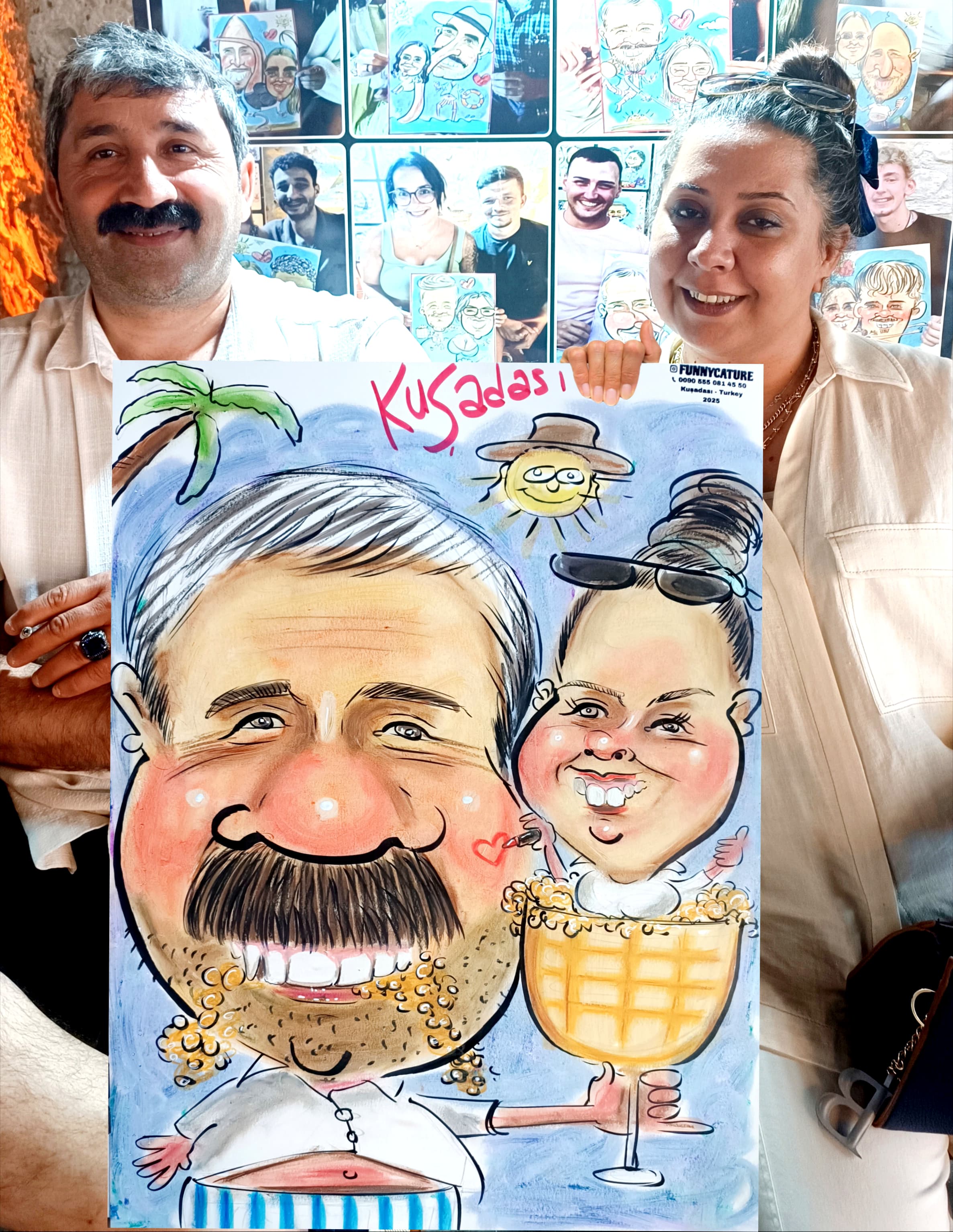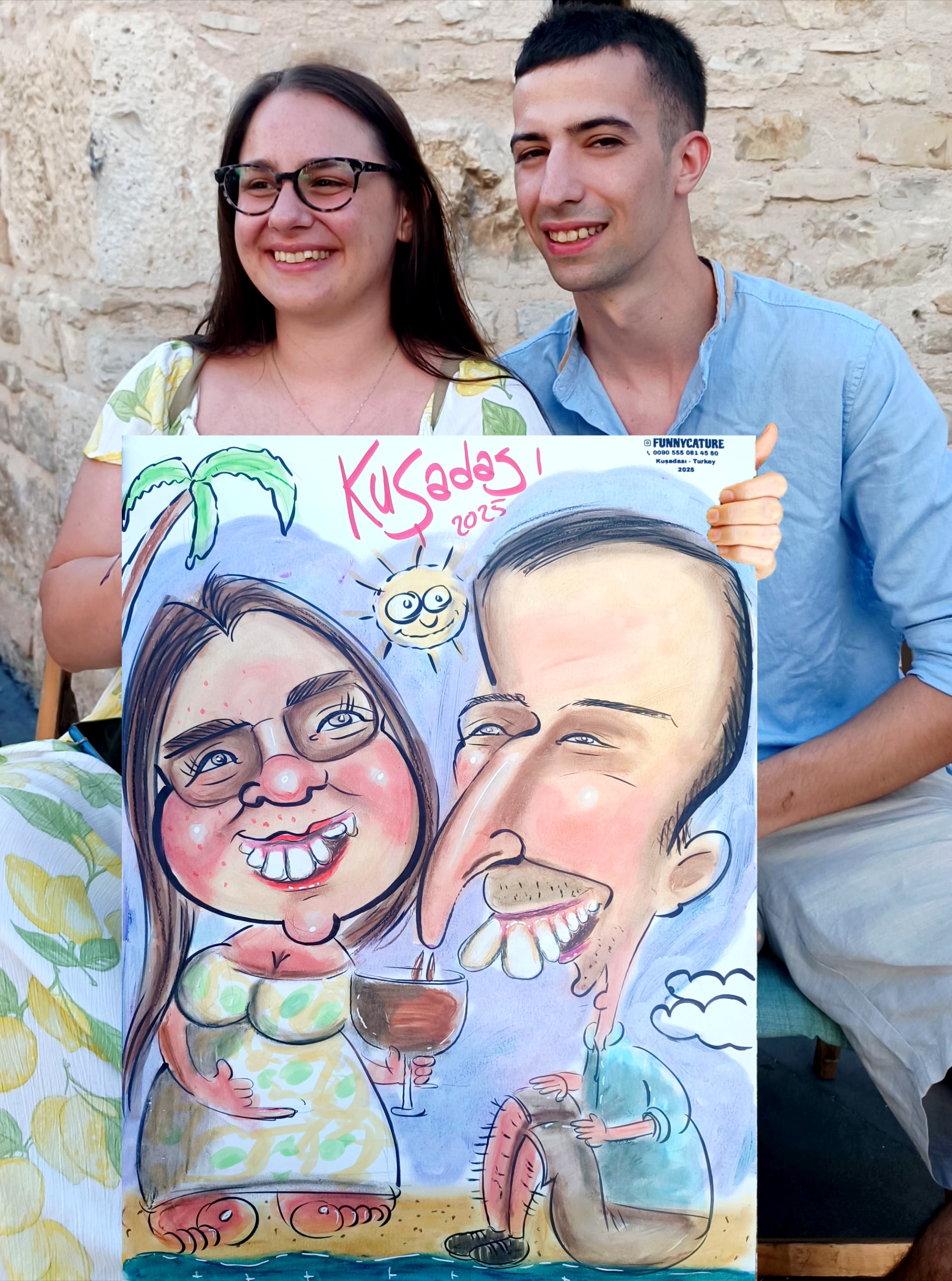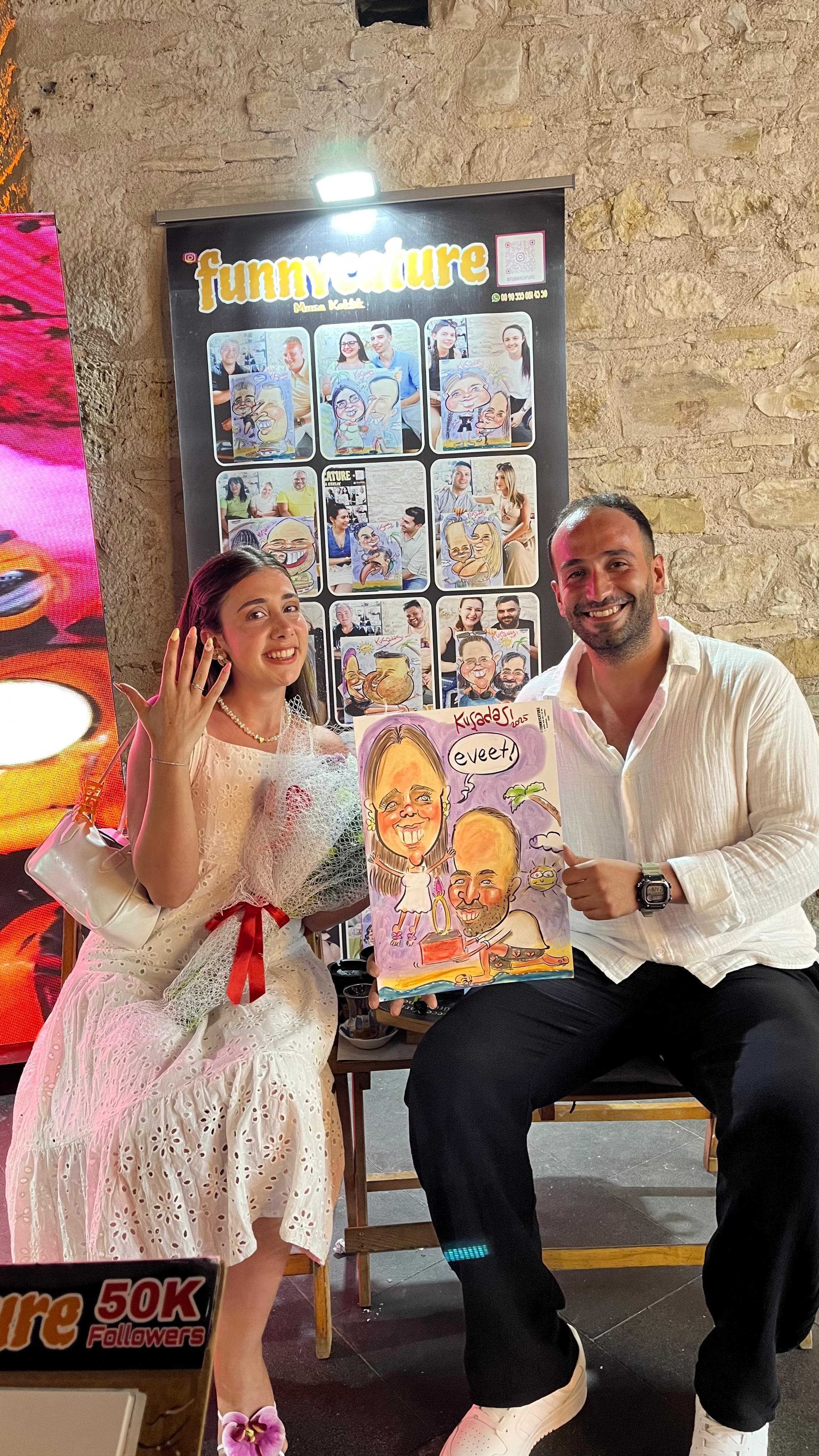 Gaziantep'ten Kuşadası'na evlilik teklifini farklı bir boyuta taşıyarak ölümsüzleştirmek için gelen 26 yaşındaki Fatma Özcan ve Çağrı Bozkurt çifti de evliliğe ilk adımlarını ödüllü karikatürist Musa Keklik'in çizdiği karikatürle attı. 2010 yılından bu yana birlikte olduklarını belirten Çağrı Bozkurt, sanatçının çalışmalarını çok beğendiklerini belirterek, ''Sosyal medya üzerinden Keklik'in çalışmalarını gördüm ve çok hoşuma gitti. Hayatımı birleştirmek istediğim Fatma Özcan'a Kuşadası tatili süprizi ile bu anlamlı heyecanı da yaşatmak istedim. Çizim boyunca çok heyecanlandım çünkü teklif tamamen süprizdi. Sonunda 'evet' cevabını alınca dünyalar benim oldu. Çok mutluyuz ve Musa Keklik'e emeğinden ötürü teşekkür ederiz.'' dedi.