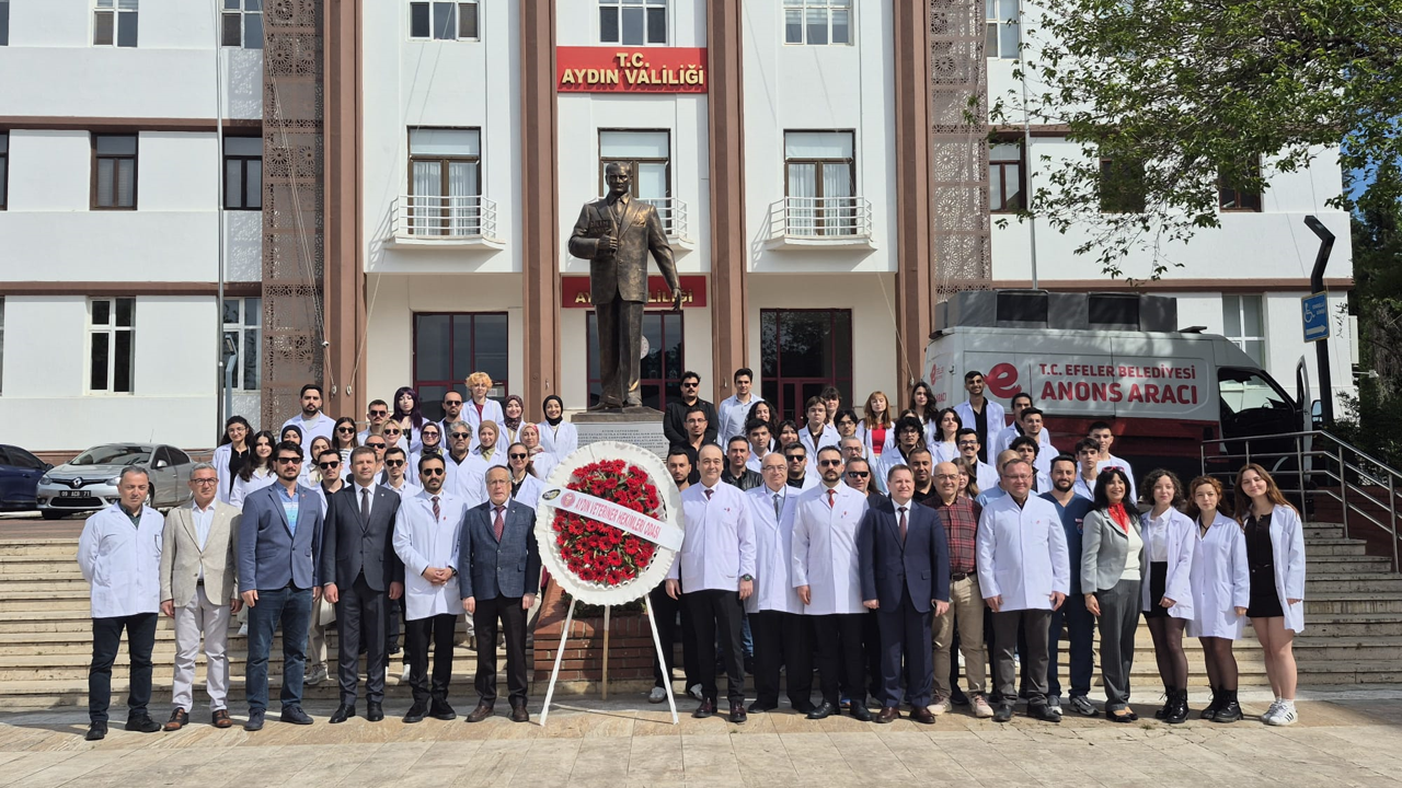 Aydın Veteriner Hekimleri Odası, 25 Nisan Dünya Veteriner Hekimler Günü’nü dolayısıyla tören düzenledi. Efeler ilçesindeki Aydın Valiliği binası önünde düzenlenen törende Aydın Veteriner Hekimleri Odası Başkanı Hakan Kaya, Adnan Menderes Üniversitesi (ADÜ) Veteriner Fakültesi öğrencileriyle birlikte Atatürk Anıtı’na çelenk sundu. Törene ADÜ Veteriner Fakültesi Dekanı Prof. Dr. Cavit Kum ve oda üyeleri katıldı. Programa beyaz önlükleriyle gelen veteriner hekimler, ‘sağlık personeli’ olduklarının mesajını verdi.
