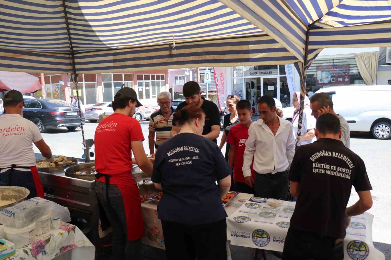 Çarşı Camii önünde gerçekleştirilen lokma hayrında Belediye Başkanı Mustafa Galip Özel’e, Bozdoğan Kaymakamı Yunus Emre Polat da eşlik ederek vatandaşlara lokma ikramında bulundu.