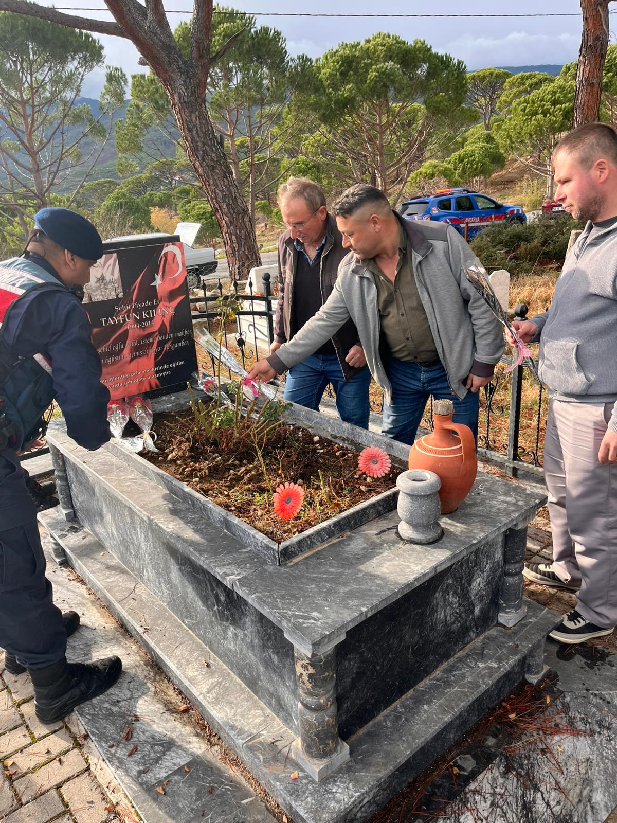 Jandarma ekipleri, aileyle birlikte şehidin kabrine giderek kabir temizliği yaptı ve dualarla anma gerçekleştirdi. Duygusal anlara sahne olan ziyarette, şehidin hatırası bir kez daha saygıyla yad edildi.