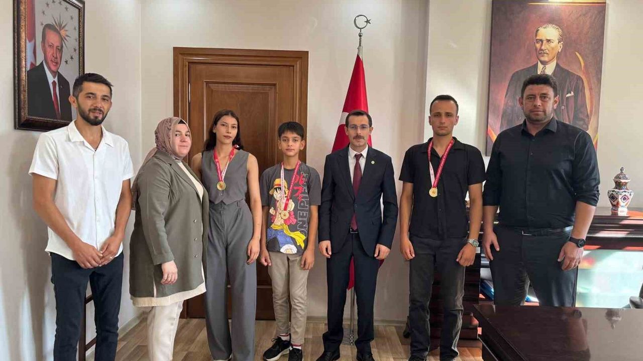 Başarılı sporcuları antrenörleri ve idarecileriyle birlikte makamında ağırlayan Kaymakam Yunus Emre Polat elde edilen derecelerden dolayı memnuniyetini dile getirdi.