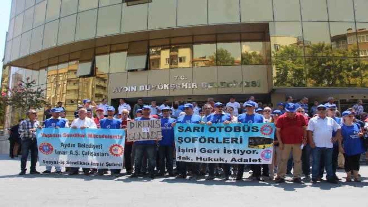 Aydın Büyükşehir Belediyesi’ne bağlı İmar A.Ş. bünyesindeki sarı otobüslerde şoför olarak çalışan ve sendikaya üye oldukları için işten atıldığı iddia edilen 9 işçi, tekrar işlerine geri dönebilmek için BŞB’ye karşı direnişini sürdürüyor.