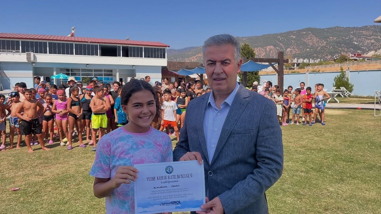 Kurslara katılan 260 çocuk ise yüzme öğrenmenin mutluluğunu yaşadı. Düzenlenen tören ile sona eren kursa katılan 260 çocuk da katılım belgelerine kavuştu. Miniklerin heyecanına ortak olan Buharkent Belediye Başkanı Mehmet Erol da, katılım sertifikalarını çocuklara takdim etti.