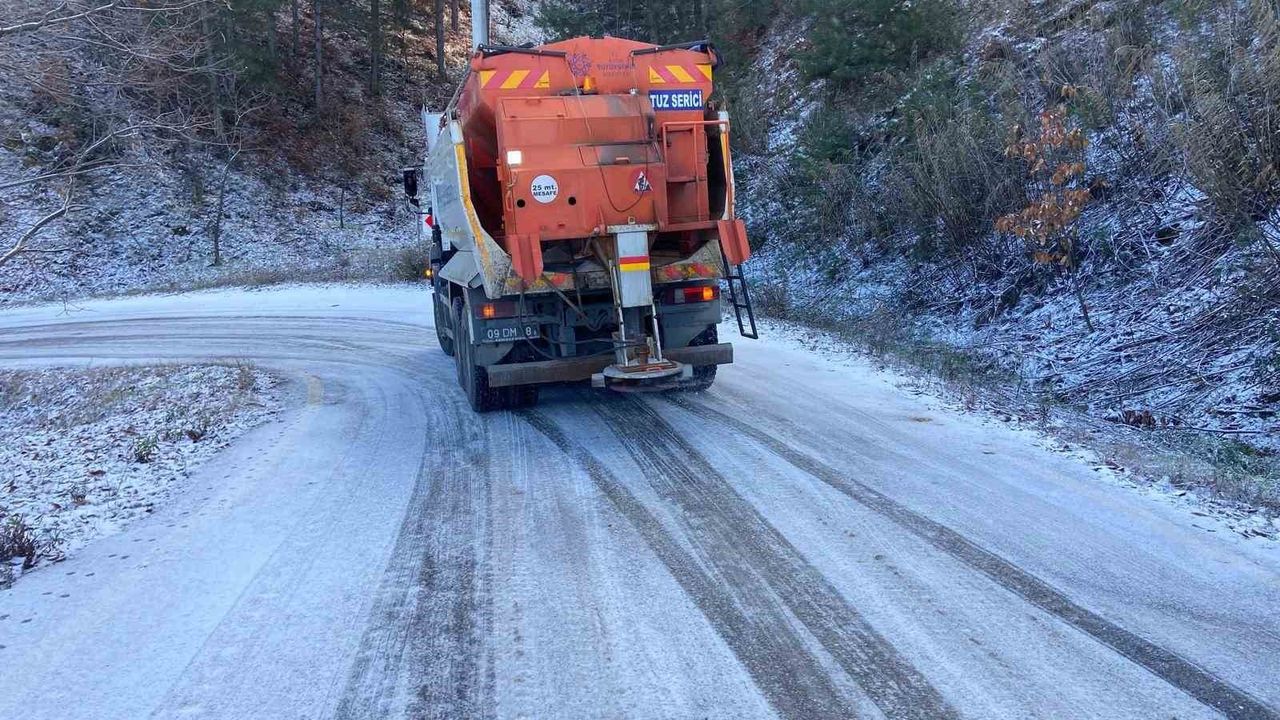 Aydın’ın yüksek kesimlerinde etkili olan kar yağışı nedeniyle, Aydın Büyükşehir Belediyesi ekipleri karla mücadele çalışmalarını aralıksız sürdürüyor.