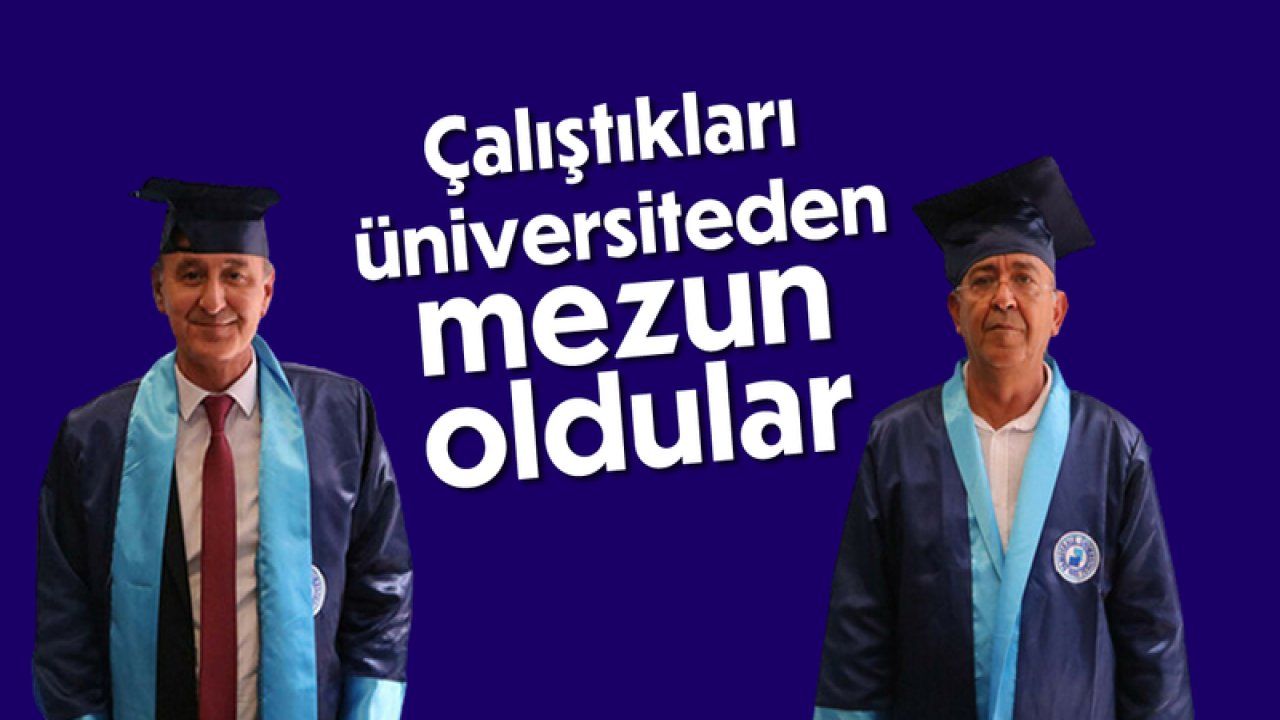 Denizli Pamukkale Üniversitesi'nde güvenlik görevlisi Murat Yürek ile ulaşım hizmetleri şefi Önder Yaşa, 2 yıl önce oğullarına destek olmak amacıyla girdikleri sınavla görev yaptıkları üniversiteyi kazandı.