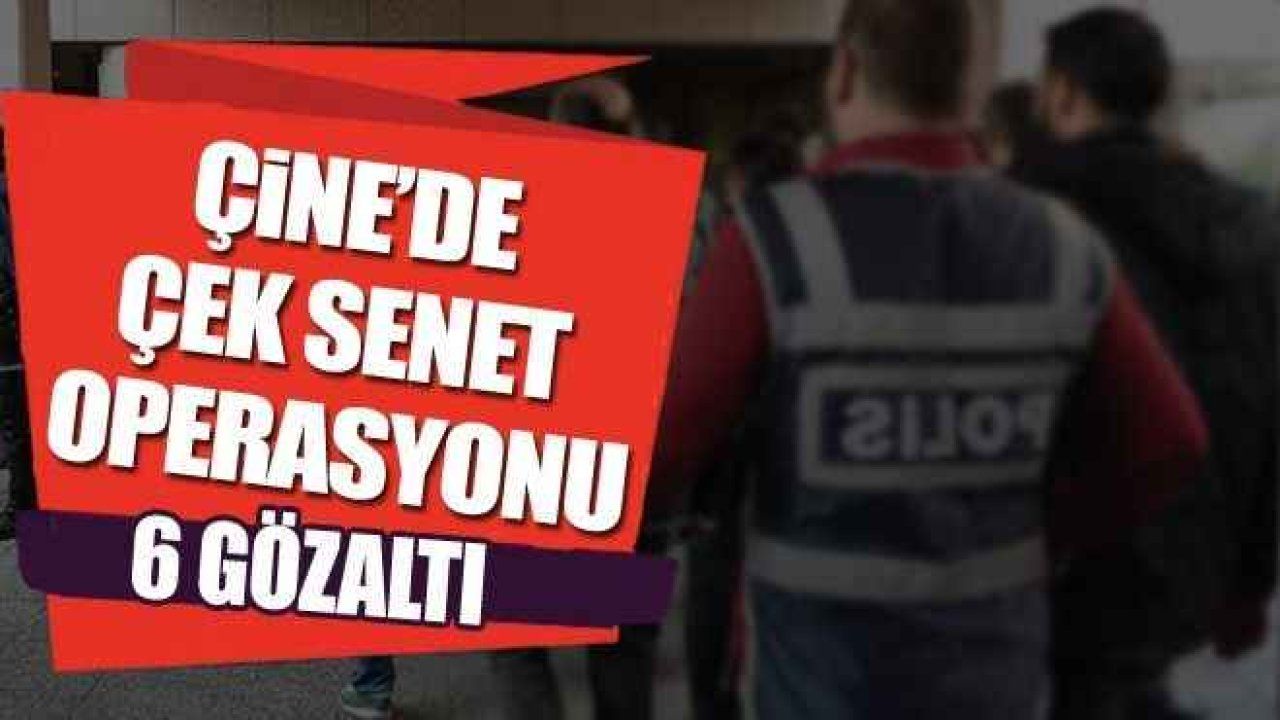 Çek-senet tahsilatı ile ilgili olduğu öğrenilen operasyonda 1’i cezaevine tutuklu olduğu öğrenilen 1’i de firari olan 2 kişinin de dosya kapsamında işlem gördüğü belirtildi. Edinilen bilgiye göre 3 aylık teknik ve fiziki takip sonunda operasyon için düğmeye basan Aydın ve Çine emniyet müdürlüğü ekipleri sabah 06.00 sıralarında eş zamanlı operasyonla 8 şebeke üyesi için işlem yaptı. R.A.’nın cezaevine tutuklu olduğu, H.B., M.U., Ç.A., M.M.T., D.A. ve O.B.’nin yapılan operasyonda gözaltına alındığı, firari olan M.A.’nın yakalanması için de çalışma başlatıldığı öğrenildi. Emniyetteki işlemlerin sürdüğü öğrenildi.
