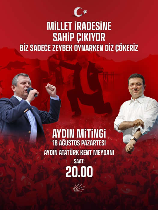 Mitinge dair tüm detayların yalnızca CHP Aydın İl Başkanlığı tarafından paylaşıldığını vurgulayan Saatçı, “Tarihe tanıklık edecek bu buluşma, 18 Ağustos Pazartesi günü saat 20.00’de Atatürk Kent Meydanı’nda, Genel Başkanımız Özgür Özel’in katılımıyla gerçekleşecektir. İl başkanlığımızın resmi açıklamaları dışında hiçbir bilgiye itibar edilmemesini rica ediyor, iradesine sahip çıkmak isteyen tüm hemşehrilerimizi mitingimize davet ediyorum” ifadelerini kullandı.