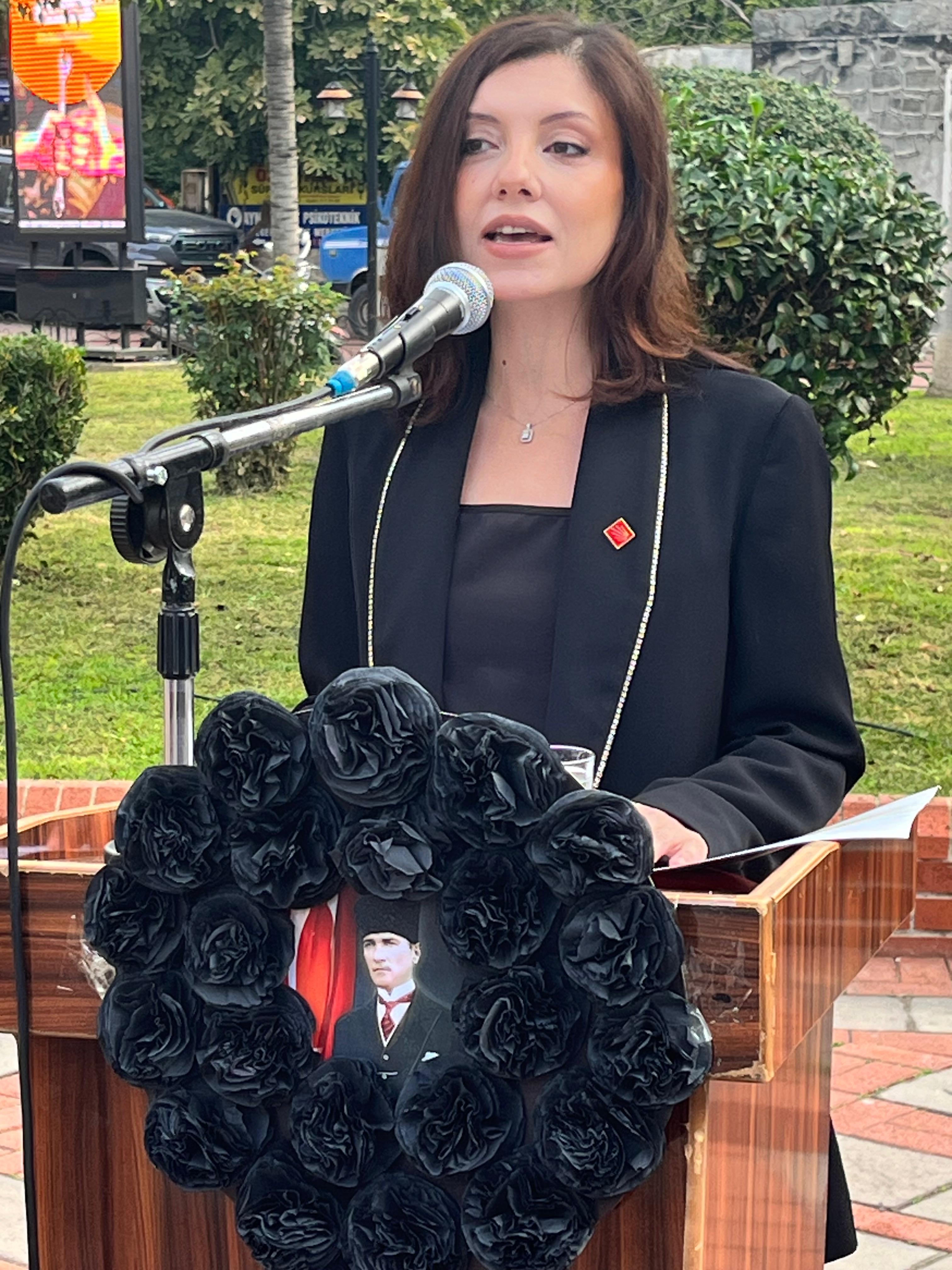 Törende konuşan CHP Nazilli İlçe Başkanı Aslıhan Ökmen, Atatürk’ün mücadelesinin ve liderliğinin her geçen yıl daha da iyi anlaşıldığını vurguladı. Ökmen, “Bir ölüm, ancak bu kadar ölümsüz olabilirdi. 15 yıl boyunca Fransa’ya ‘hayır’ dedirten Hatay meselesini, hastalığına rağmen 56 günde çözmüş, milletine olan inancıyla Hatay’ı kurtarmıştır. O’nun azmi, kararlılığı ve vatan sevgisi bugün de yolumuzu aydınlatıyor. Aradan geçen 87 yıla rağmen, aynı özlem ve minnetle anıyoruz” ifadelerini kullandı.