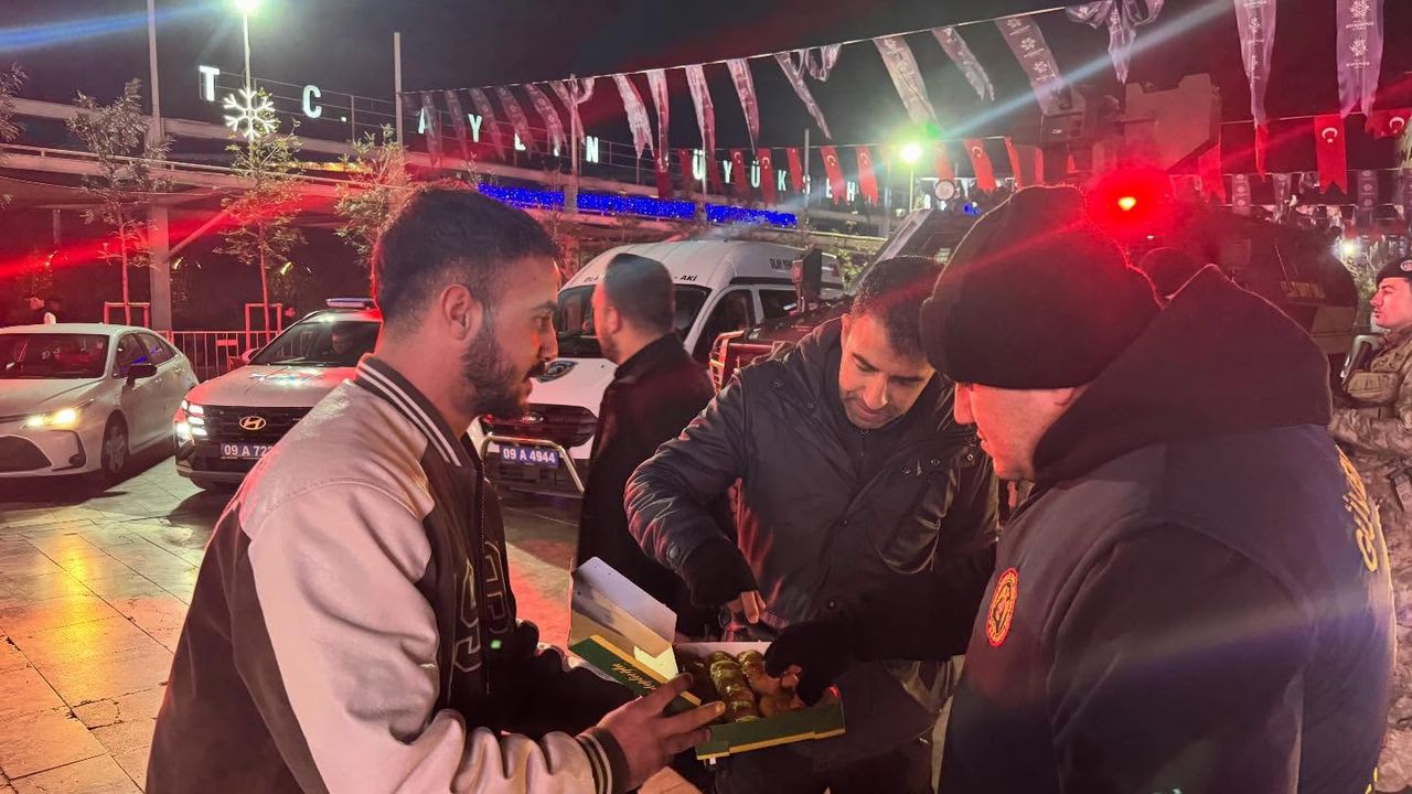 Aydın’da çalışmalarını sürdüren CHP Gençlik Kolları İl Başkanı Ufuk Gündoğdu, yılbaşı gecesi görev başında olan kamu çalışanlarını unutmadı. CHP’li başkan Gündoğdu, Efeler ilçesindeki Atatürk Kent Meydanı’nda görev yapan polisleri, Atatürk Devlet Hastanesi’ndeki sağlık çalışanları ve Efeler Belediyesi Temizlik İşleri Şantiyesi’ndeki çalışanları ziyaret ederek tatlı ikramında bulundu.