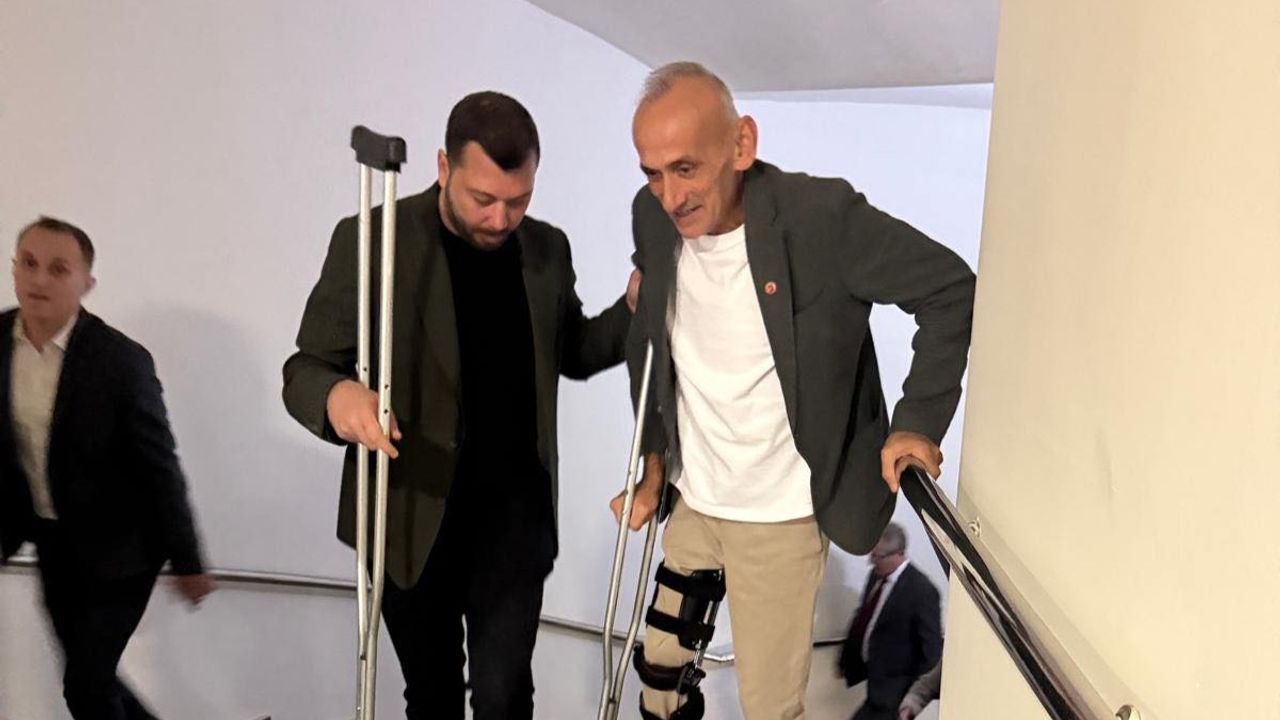 Ayağındaki alçı çıkarılmasına rağmen medikal cihaz desteğiyle hareket eden Güler, koltuk değneğiyle toplantıya geldi. CHP’li meclis üyelerinin desteğiyle toplantı salonuna giren Güler’in bu tavrı, partililer tarafından takdirle karşılandı.