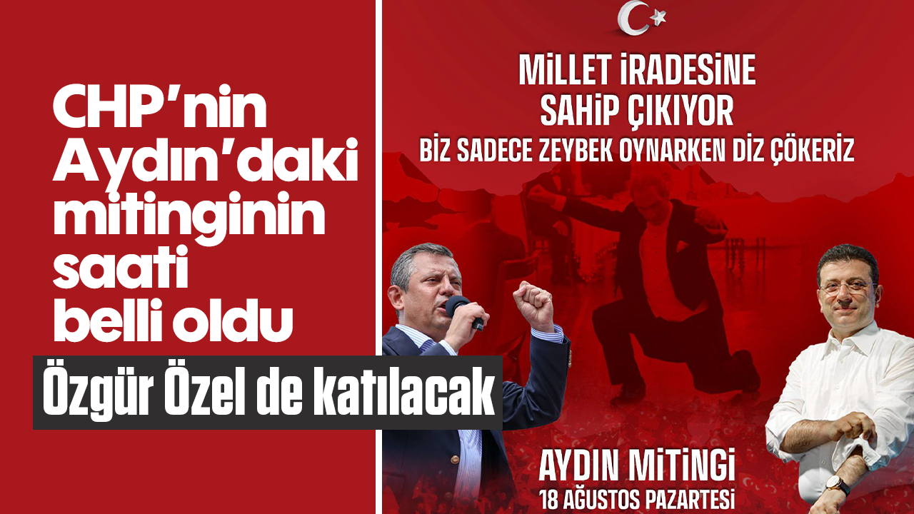 CHP Genel Başkanı Özgür Özel’in katılımıyla Aydın’da düzenlenecek olan mitingin saati ve yeri de belli oldu. 18 Ağustos pazartesi günü yapılacak olan kongre saat 20.00'de Atatürk Kent Meydanı'nda gerçekleştirilecek.