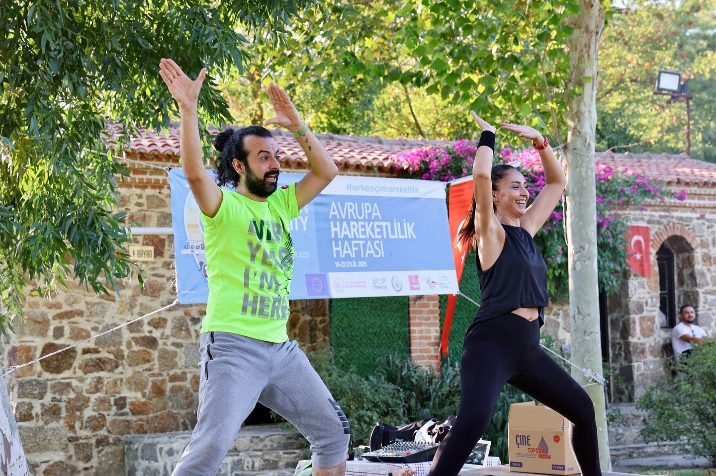 Sabahın erken saatlerinde bir araya gelen vatandaşlar, zumba eğitmenleri Egemen Korkmaz ve Selda Candaş eşliğinde güne sporla ve yüksek motivasyonla başladı.