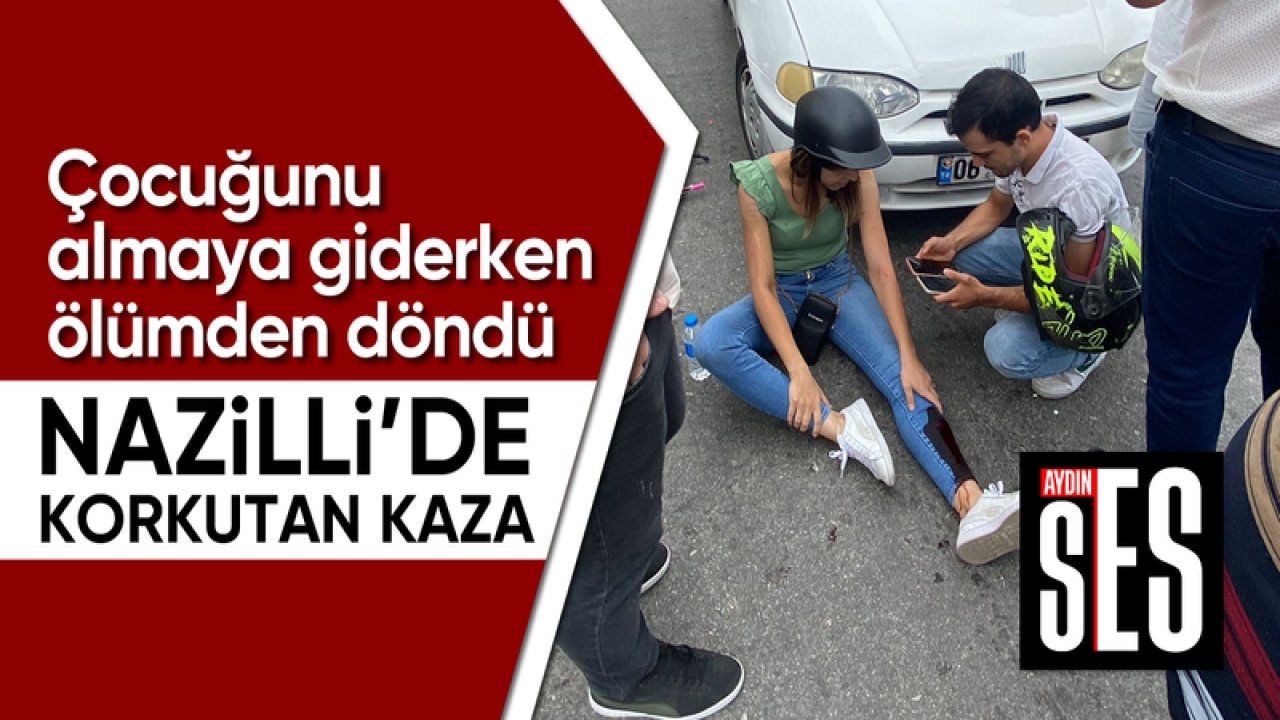 Kaza, Nazilli’de Hürriyet Caddesi ve Ordu Caddesi’nin kesişiminde gerçekleşti. Öğle saatlerinde yaşanan kazada otomobil ile motosiklet çarpıştı. Alınan bilgiye göre, Hürriyet Caddesi’nde ilerleyen M.G. yönetimindeki 06 GM 593 plakalı otomobil, kavşakta çocuğunu okuldan almaya giden E.G. idaresindeki 09 NS 221 plakalı otomobile çarptı. Çarpmanın etkisiyle yola savrulan motosiklet sürücüsü kadın yaralandı. Bacağından ve başından darbe alan kadına ilk müdahaleyi çevredekiler yaptı.