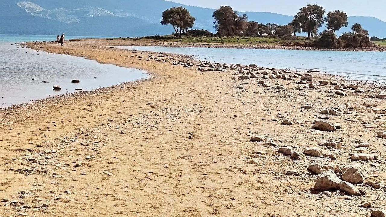 Aydın'ın turistik ilçesi Didim’de yer alan ve halk arasında Saplı Ada olarak adlandırılan adanın karayla bağlantısı denizin çekilmesi neticesinde yeniden ortaya çıktı.