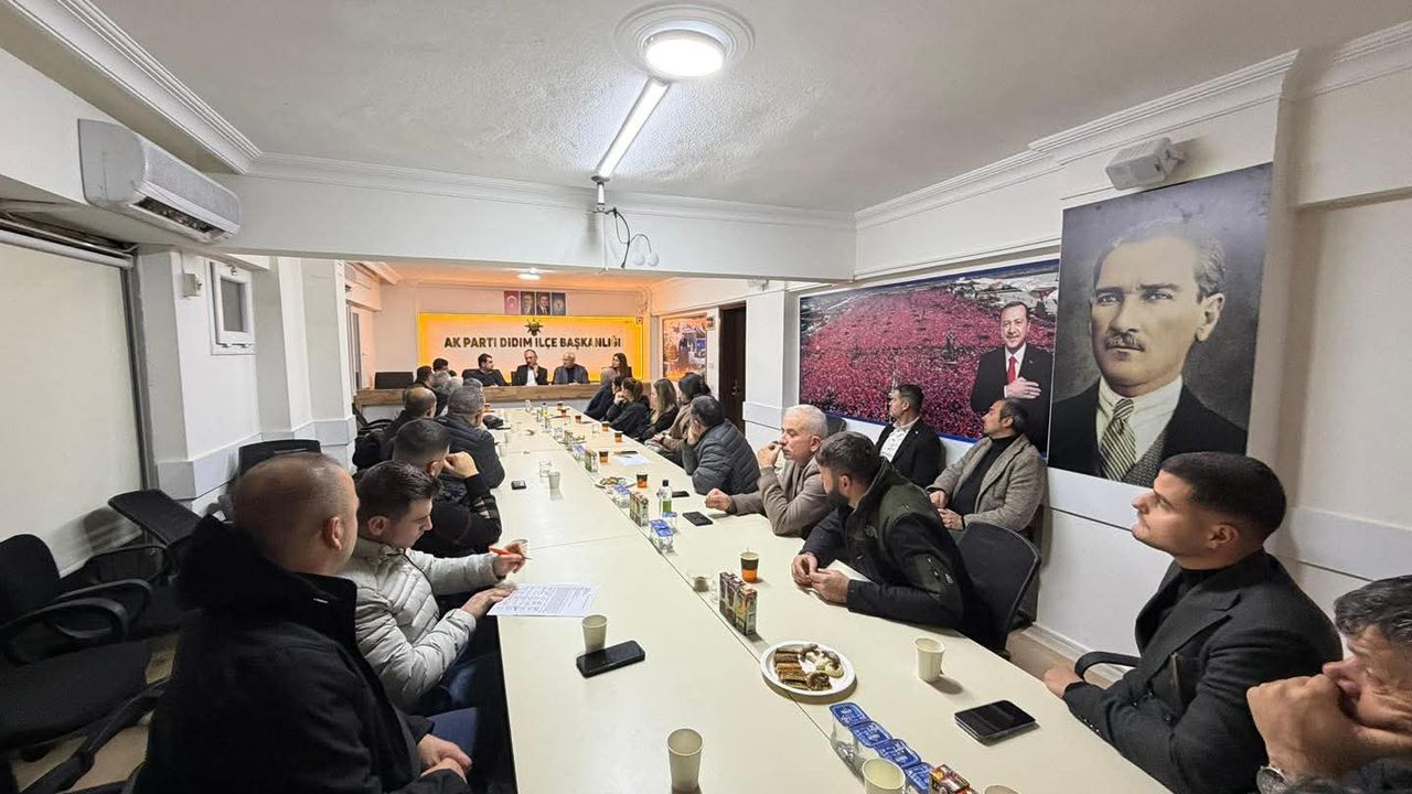 AK Parti Didim İlçe teşkilatının yeni yönetimi ilk toplantısını ilçe binasında yapıldı. Toplantıya AK Parti İlçe Koordinatörleri Namık Yıldırım ve İl Seçim İşleri Başkanı Mehmet Aydemir, İlçe Başkanı Mehmet Vela ile ilçe Yönetim Kurulu üyeleri katıldı.