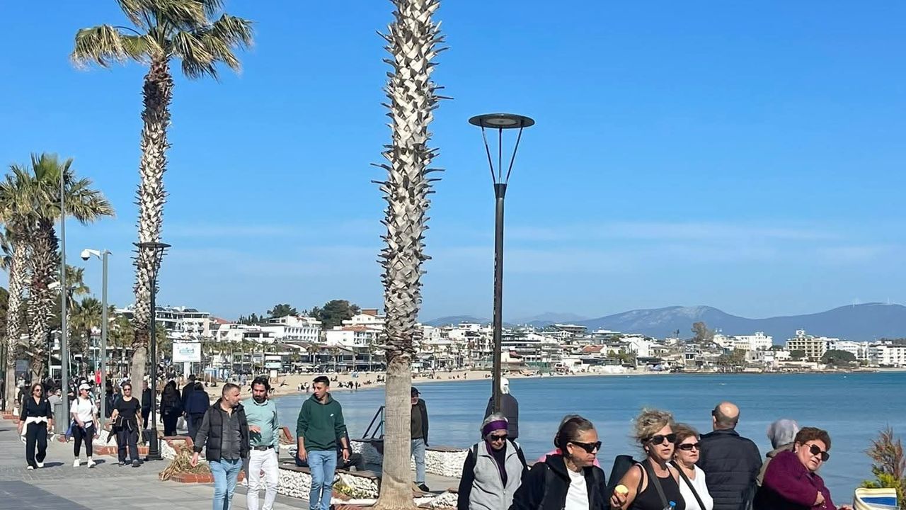 Didim'de Hava sıcaklığının mevsim normallerinin üzerinde seyretmesiyle birlikte vatandaşlar sahil boyunca yürüyüş yaptı, deniz manzarası eşliğinde vakit geçirerek güneşin tadını çıkardı. Bazı vatandaşlar sahilde oturup dinlenirken, bazıları ise kafe ve işletmelerde oturarak keyifli anlar yaşadı. Mart ayı olmasına rağmen yazdan kalma görüntülerin yaşandığı Altınkum sahilinde çocuklar sahilde oyun oynarken, aileler de güzel havayı değerlendirdi. Sahil boyunca hareketlilik yaşanırken esnafın da yoğunluktan memnun olduğu görüldü. Didim’de etkili olan güneşli havanın önümüzdeki günlerde devam etmesi bekleniyor.