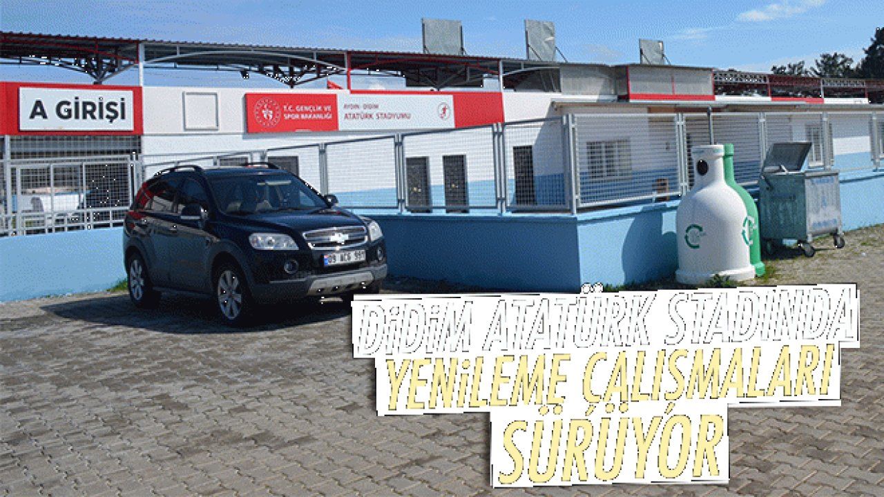 Didim Atatürk Stadının bakım ve onarım çalışması tüm hızıyla sürüyor. Bu yıl ülke genelinde tüm statların Gençlik ve Spor Bakanlığı bünyesinde kalması sebebiyle Didim Atatürk Stadı da Didim İlçe Gençlik ve Spor Müdürlüğüne geçmişti. Süreç içerisinde Aydın İl Gençlik ve Spor Müdürü Cenap Fillikçioğlu, Didim Stadının tribün, soyunma odaları ve diğer anlamdaki eksikliklerinin giderileceğini bildirmesinin ardından stattaki çalışmaları devam ediyor. Bu kapsamda stat tribünlerinin dış cephesi boyanırken, tabelalarının asıldığı görüldü. Tribün altlarında bulunan ve kulüplere verileceği öğrenilen yerlerin ise dış tamiratının yapıldığı ve kapıların yerleştirildiği görüldü. Soyunma odaları kısmının yıkılmasının ardından ihale sürecinin tamamlanması sonrasında yeni tribün çalışmalarına başlanacağı öğrenilirken, sahanın çim bakımlarının ise yapıldığı görüldü.