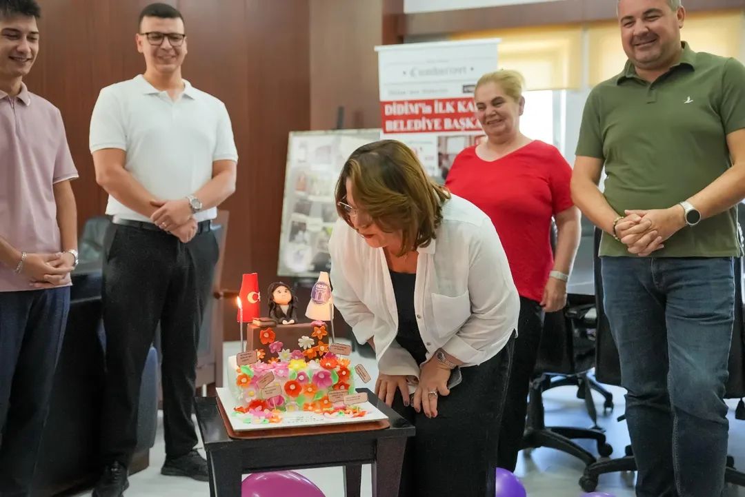 Didim Belediye Başkanı Hatice Gençay, doğum günü kutlandı. Başkanlık makamında gerçekleşen kutlamaya Başkan yardımcıları, belediye özel kalem müdürlüğü personeli ve başkanın koruma ekibi katıldı. Başkan Gençay hazırlanan doğum günü pastasını keserken, mutluluğunu personeliyle paylaştı. Başkan Gençay doğum gününü kutlayan personeli teşekkür etti.