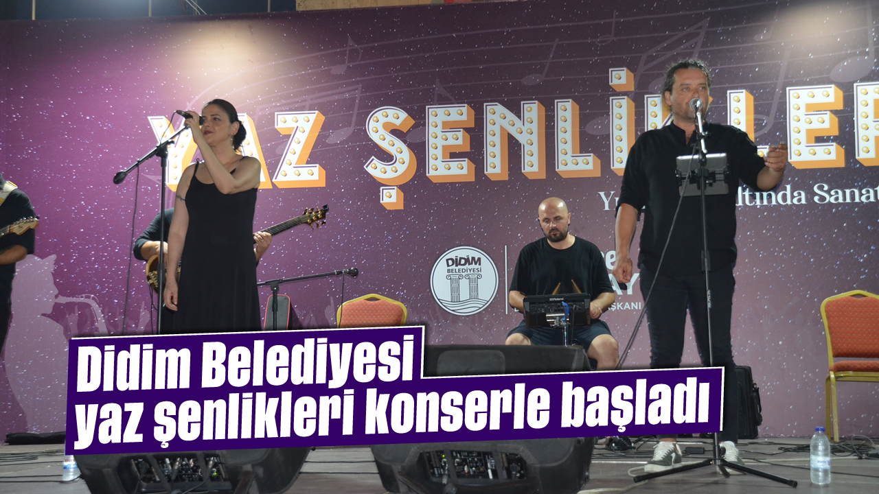 Didim Belediyesi Kültür ve Sanat etkinliklerini “Yaz şenlikleri” adı altında gerçekleştirmeye başladı. Şenlik kapsamında ilk olarak Kent meydanında konser düzenlendi. Yerel Sanatçılar Özlem Yeşil ve Ömer Gündüz’den oluşan grup konser verdi. Meydandaki konsere Didimliler de eşlik etti. Gencinden yaşlısına bir çok kişi sandalyesini alarak konseri dinledi. Yerel Sanatçılar Özlem Yeşil ve Ömer Gündüz Pop, Rock ve Türkü’lerden oluşan repertuarında bir çok eser seslendirirken, zaman zaman vatandaşlarda konsere eşlik etti. Yaklaşık 1,5 saat süren konserde eğlenceli ve hoş anlar yaşandı.