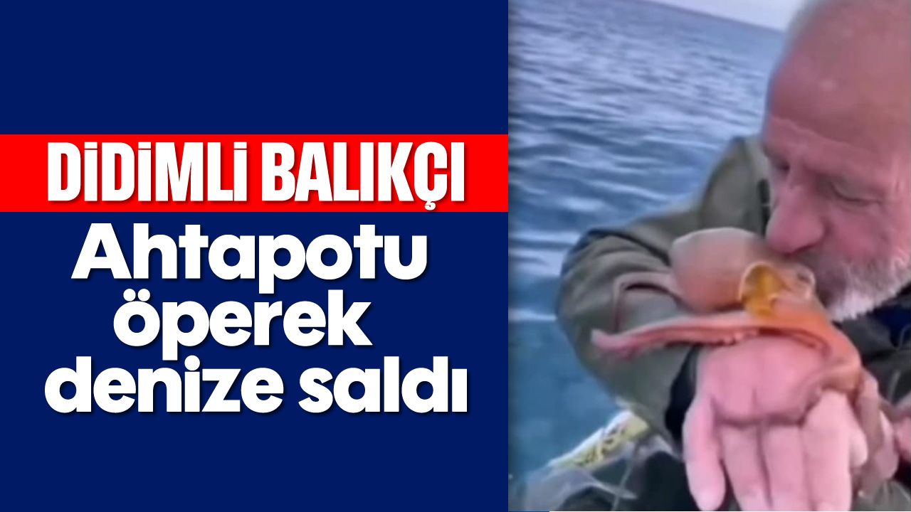 Didim'in Akköy mahallesi Taşburun'da, balıkçının ağına takılan Ahtapot balıkçının şefkatli elleriyle tekrar denize bırakıldı.