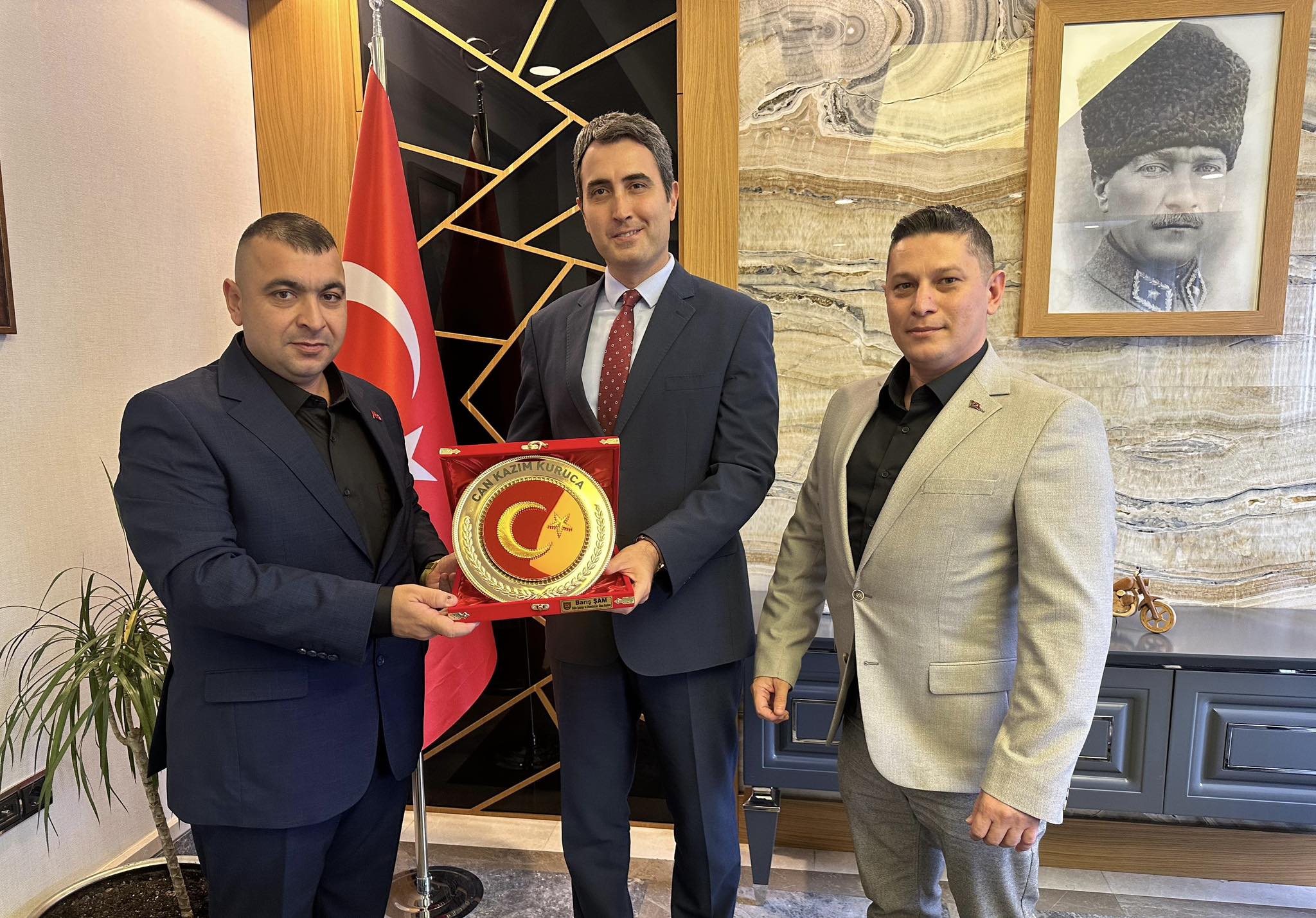 Didim Şoförler ve Otomobilciler Odası Başkanı Barış Şam, Bucak Kaymakamlığı makamında gerçekleşen ziyarette Kaymakam Can Kazım Kuruca’ya çalışmalarında kolaylıklar dileyerek, Ayyıldız Türk bayraklı tabak plaket armağan etti.
