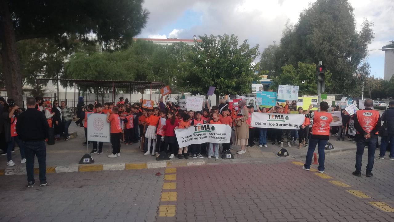 Didim’de TEMA öncülüğünde, Erozyonla Mücadele Haftası kapsamında yürüyüş düzenlendi. Atatürk ilkokulu önünde başlayan yürüyüş kapsamında öğrenciler ellerinde toprağın, suyun, doğanın ve çevrenin temizi tutulması, kirletilmemesi ve gelecek nesillere bırakılması noktasında pankart ve dövizler taşındı. Polis eşliğinde Cumhuriyet Caddesi üzerinde yürüyüş yapan öğrencilere esnaflar ve vatandaşlarda alkışlarla destek oldu. Cumhuriyet Caddesi üzerinde süren yürüyüş, yine okul önünde sona erdi. Yürüyüş esnasında Erozyonla Mücadeleyi anlatan broşürlerde vatandaşlara dağıtıldı.