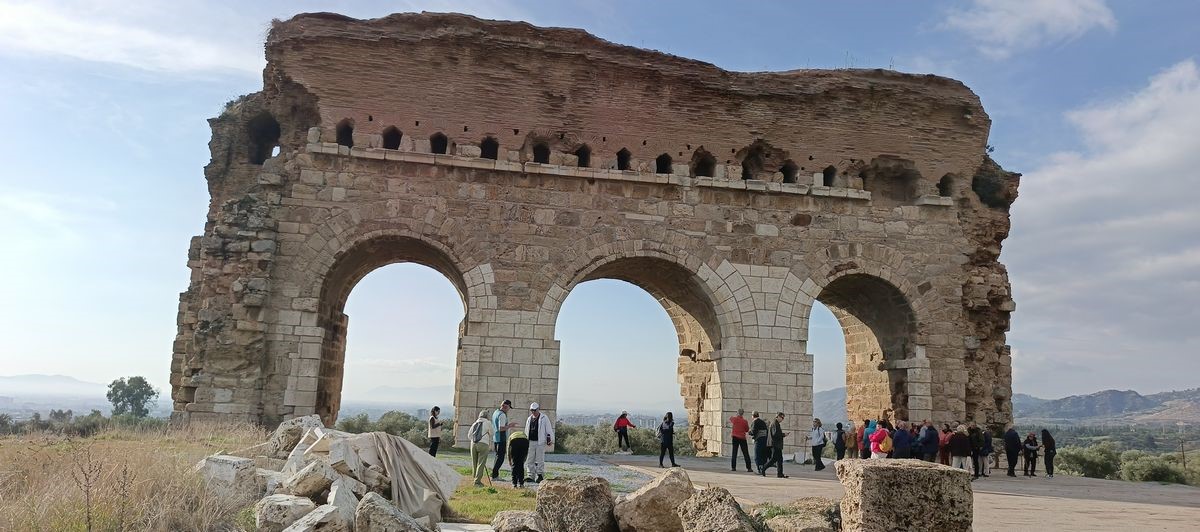 "Aydın’da kentin yanı başında olan, Strabon’un ’masa biçimli bir yükselti’ dediği Tralleis Antik Kenti’ne gittik bu hafta. Profesyonel turist rehberi Hakan Bahçecioğlu’yla birlikte, antik çağdaki anlamı ’topraklar arasında’ olan Mesogis Dağları’nın yamaçlarında yer alan harika peyzajlar oluşturan Kızılçay vadisi rotamızın ilk durağı oldu. Karagözler yaylasından su getiren Kızılçay’ın geçit vermeyen yarlarının içinde gümüş bir gerdanlık gibi duran olağanüstü bir yapıyı görmek için çayın içine indik. Yağan yağmurlardan sonra çaydan geçebilir miyiz diye düşünürken, ne yazık ki su birikintisine bile rastlayamadık. Çayın içinde yürürken en önemli sorunun susuzluk olduğunu düşündük. Tralleis’e su taşıyan Roma Dönemi’ne ait bir mühendislik harikası olan Karakemer’in görkemli siluetini izleyip, kilometrelerce yukarıdan suları kentlerine nasıl taşıdıklarını gördük. Asırlardır ayakta kalan ölmez ağaç zeytinin ’dağlarından yağ akar’ sözünün gerçekliğini yerinde izledik. Aydın’ın doğal peyzajına büyük zenginlik kazandıran, Tralleis antik kentinin arkasında panoramik bir tablo gibi duran kızıl toprakların yükseltilerinden bir seyir yaptık. Peyzaj çalışmaları devam eden ve önümüzdeki aylarda ziyaretçiye açılması planlanan Tralleis antik kentine geldik. Ziyarete açılmaya hazırlanan Efeler ilçesi, Topyatağı mevkiinde yer alan Tralleis antik kentiyle ilgili bir sunum yapıldı. Üçgözler olarak bilinen devasa yapının Aydın’ın tanıtımında çok önemli bir yeri olduğu, bu kompleksten çok önemli bilim insanları ve sporcuların çıktığı ve havuzda yapılan çalışmalar anlatıldı. Zengin Roma Villaları ve çevresinde yer alan metal malzeme üretiminin yapıldığı işlikler ve çıkarılan eserler anlatıldı. Tralleis antik kentinin, Efes kadar önemli bir turizm destinasyonu haline geleceğini anlatan kazı başkanı Prof. Dr. Murat Çekilmez, bu nedenle çevre düzenleme projesi kapsamında karşılama merkezi, yürüyüş yolları, ışıklandırma gibi yeniliklere önem verdiklerini söyledi. Biz de ziyarete açıldıktan sonra Kuşadası’ndan da tarihe duyarlı yerli yabancı birçok insanın Tralleis’e ziyaret etmesi için gerekli çalışmaları yapacağımızı söyledik. Aydın’a bu kadar yakın hem doğal hem de tarihi zenginliklerin bulunması çok önemlidir. Bu değerlerin gelecek kuşaklara korunarak ulaştırılması, Aydınlıların sahip çıkması ve destekleri sayesinde olacaktır" dedi.