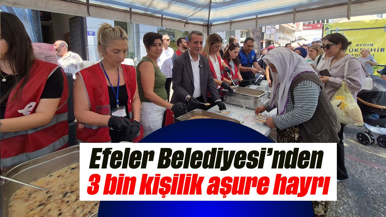 Aydın’da Efeler Belediyesi, esnaf ve vatandaşları, aşure hayrında buluşturdu. Zafer Meydanı’nda gerçekleşen aşure hayrına Efeler Belediye Başkanı Anıl Yetişkin, belediye başkan yardımcıları, belediye meclis üyeleri de katıldı. Muharrem ayı dolayısıyla düzenlenen üç bin kişilik aşure hayrı yoğun ilgi gördü. Programda Başkan Yetişkin, eşi Yeşim Kasap Yetişkin ile birlikte vatandaşlara kendi elleriyle aşure ikram etti.