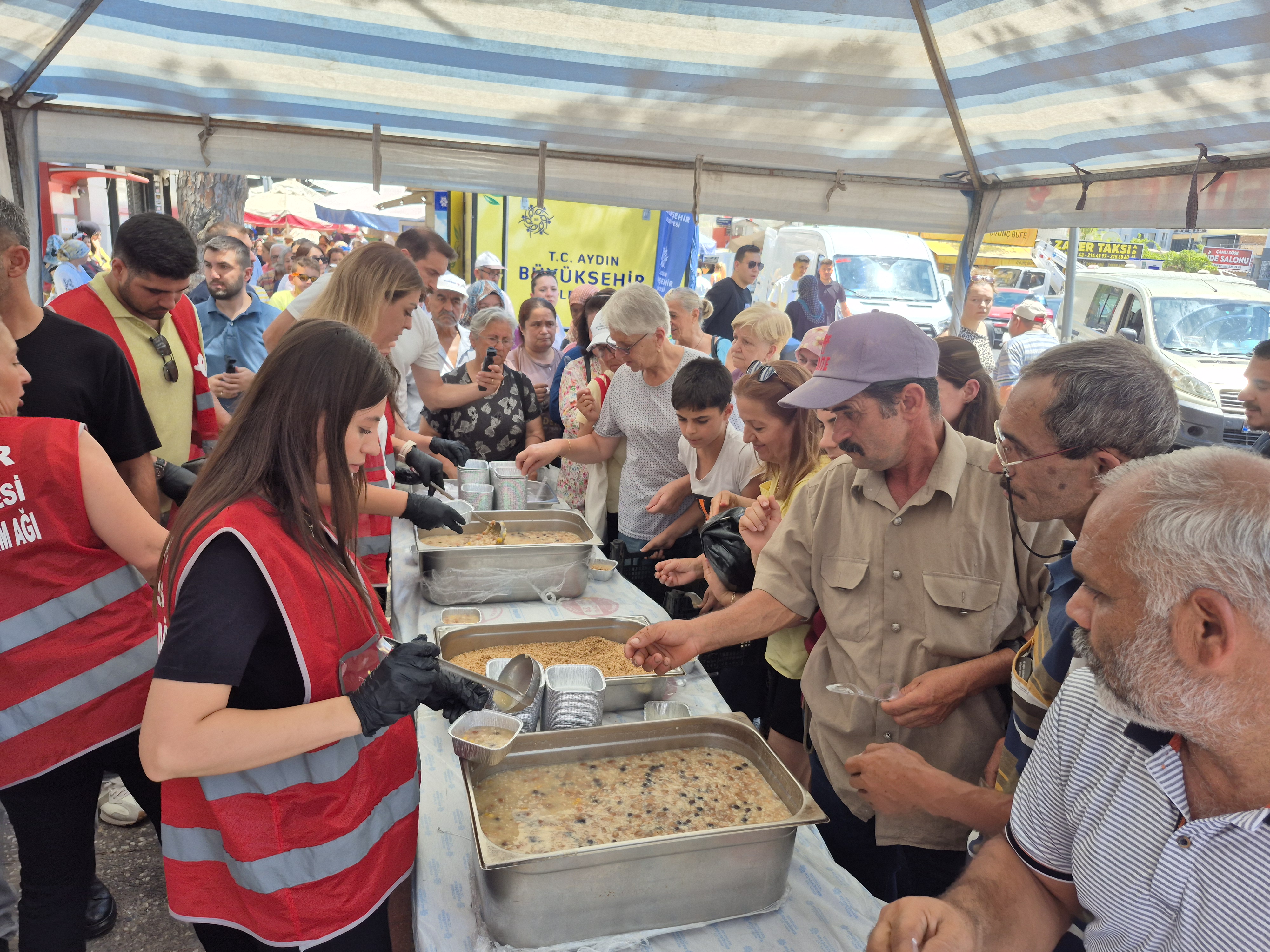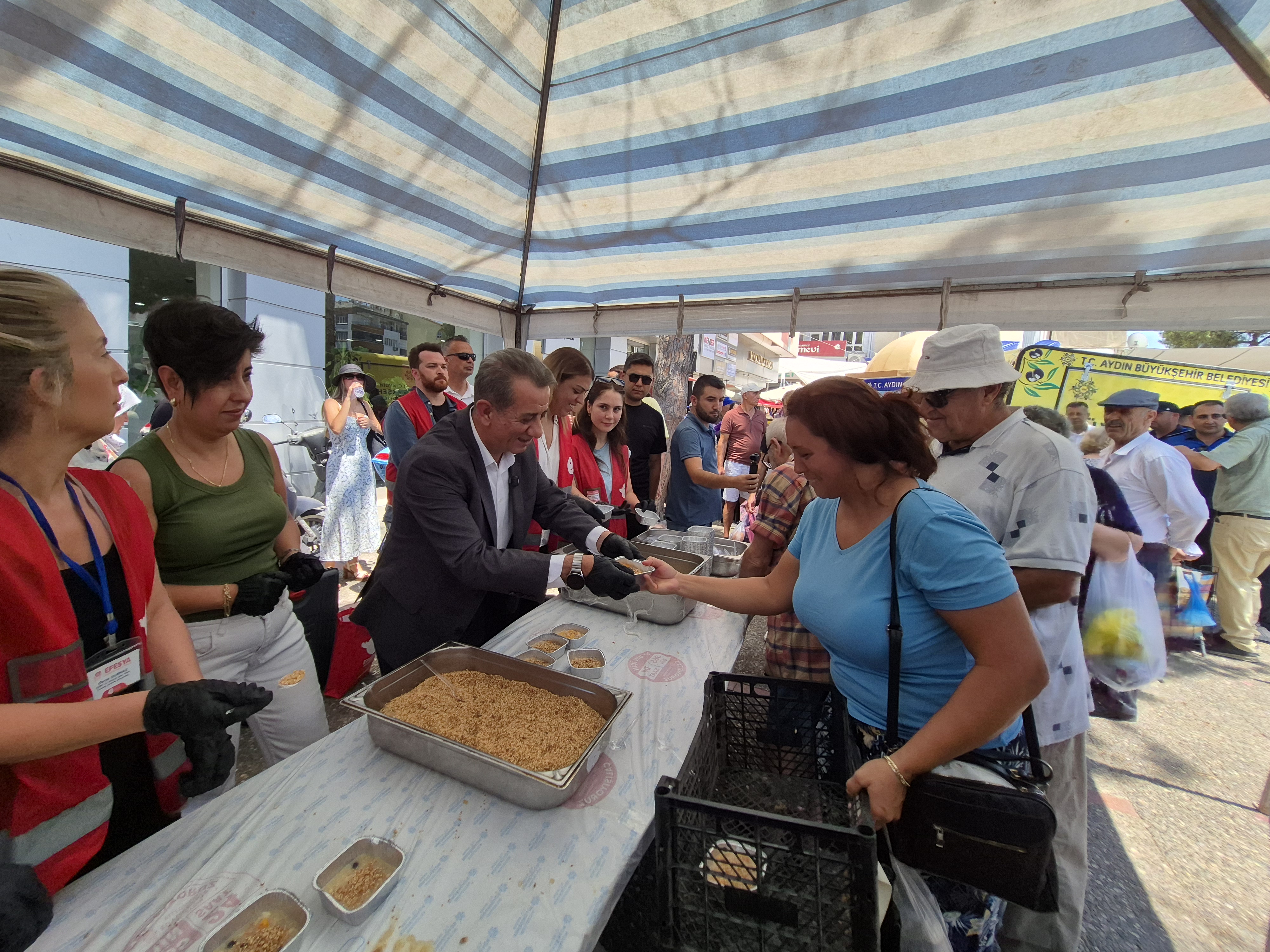 Aşure hayrına katılan herkese teşekkür eden Başkan Yetişkin, “Aşure, bizim bir kültürümüzdür. Yaşayan bir töremizdir. Aşure birbirinin ne kadar ayrık da olsa insanların nasıl birbiriyle kaynaştığını hem kendisi gösterir hem de insanlara gösterir. Ondan dolayı biz de belediye olarak Efeler Belediyesi olarak vatandaşlarımızla bu güzel birlikteliği paylaşmak istedik. Çok yoğun da bir katılım var. Ondan dolayı ben de çok memnunum.” dedi. Esnaf ve vatandaşlar da aşure hayrından dolayı Başkan Yetişkin’e teşekkür etti.